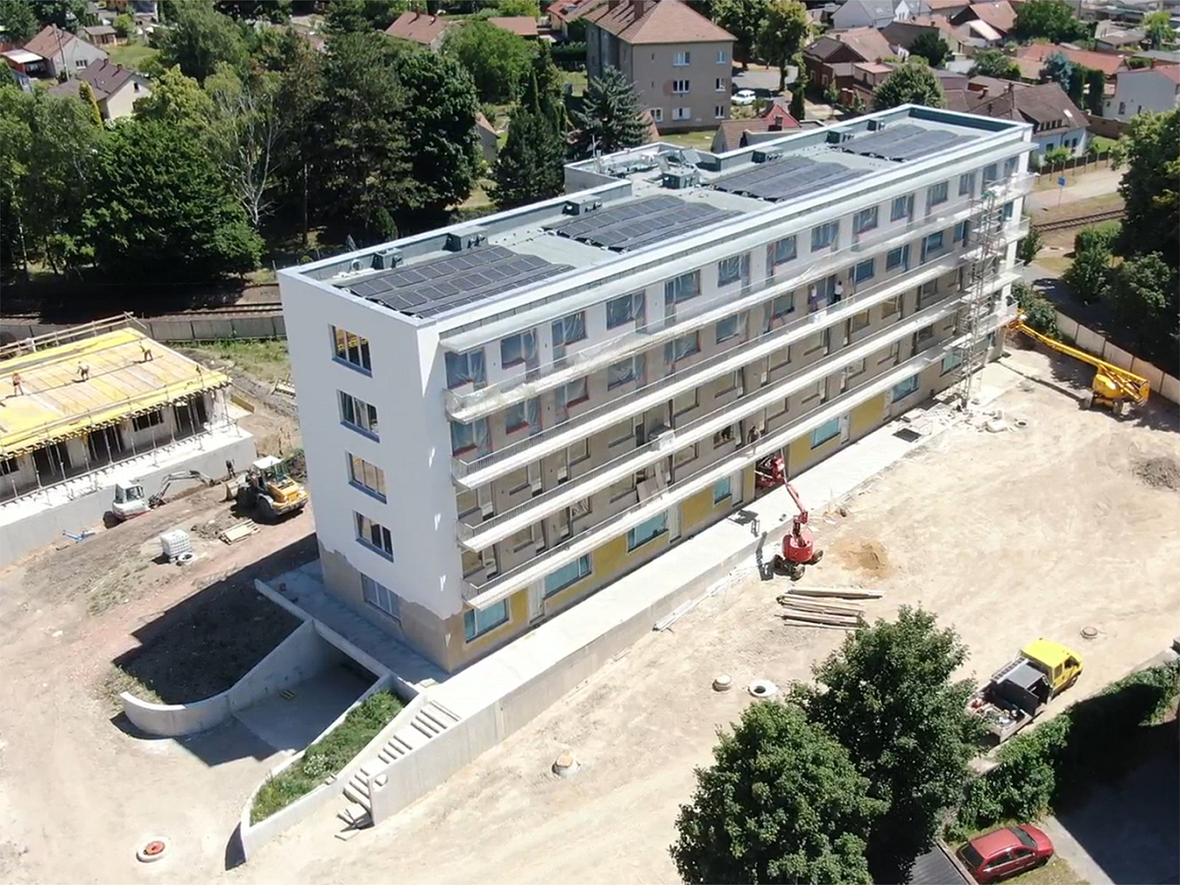 Nový bytový dům má vkusné architektonické prvky, hliníková okna s izolačními trojskly, jižní okna s předokenními žaluziemi, kvalitní zateplení a vlastní střešní solární elektrárnu – to mu v rámci hodnocení energetické náročnosti přineslo nejvyšší třídu A – mimořádně úsporný. To ocení vlastníci v podobě nízkých provozních nákladů.