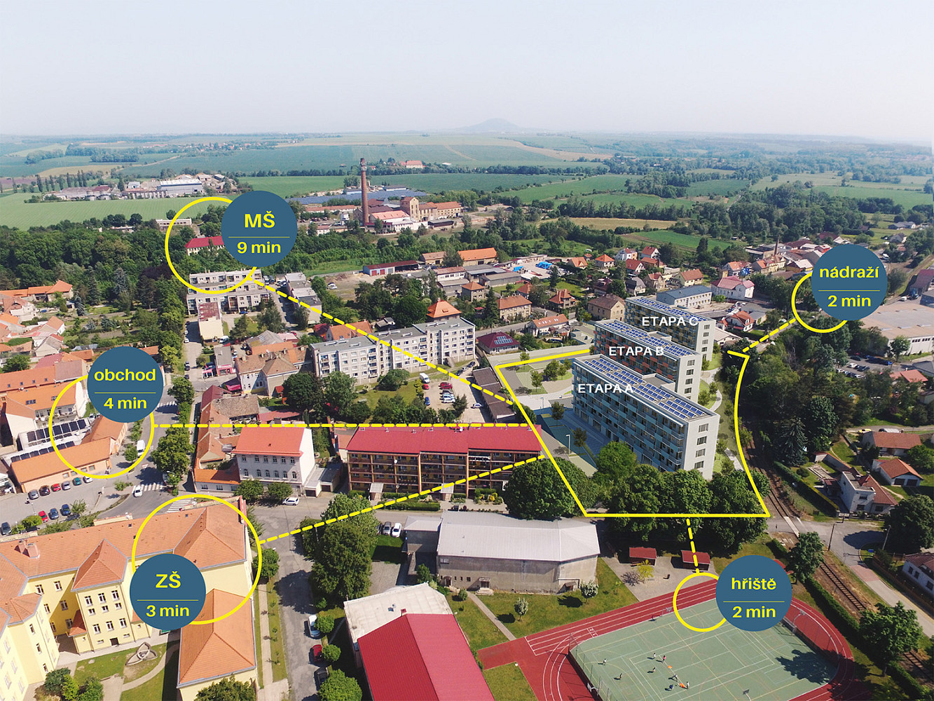 Nabízíme vám atraktivní nový byt ve Velvarech 20 min od metra C „Střížkov“ či „Letňany“ v energeticky mimořádně úsporném novém bytovém domě ("A") s vlastní střešní solární elektrárnou. V ceně bytu jsou 2 terasy 34,5 m² a 7,5 m², zahrada 205 m² a sklep 2,5 m² a dokoupit lze garážové stání.