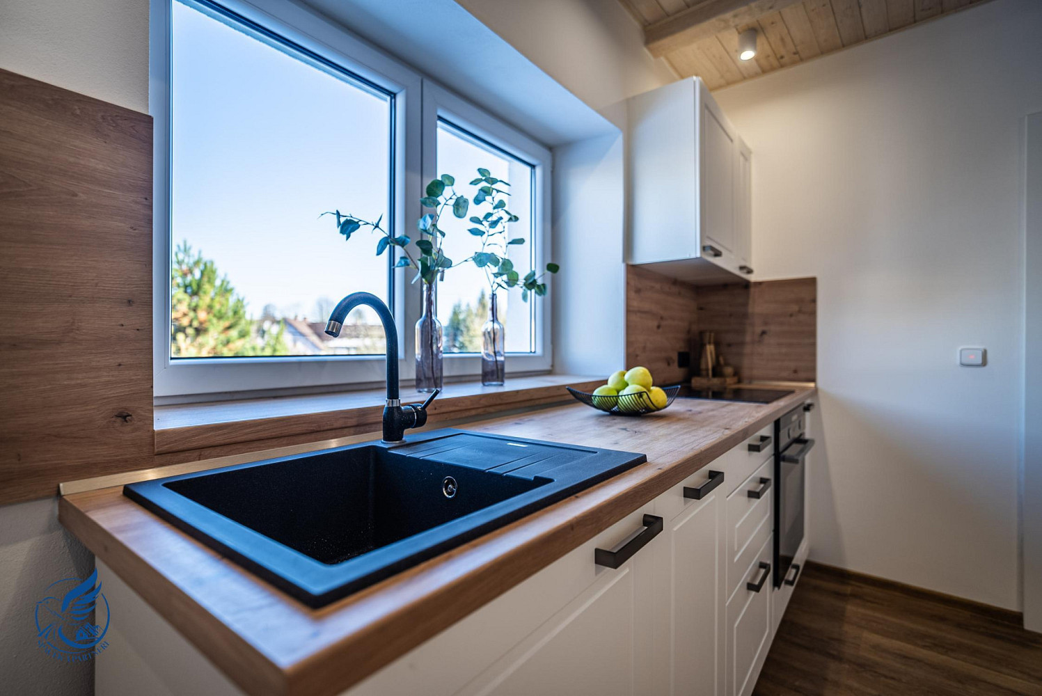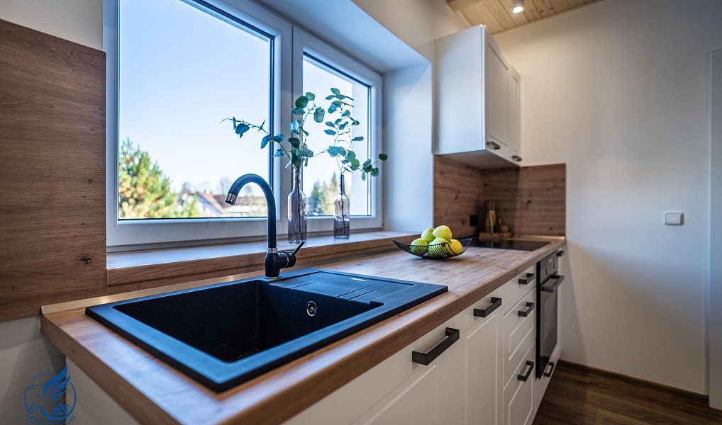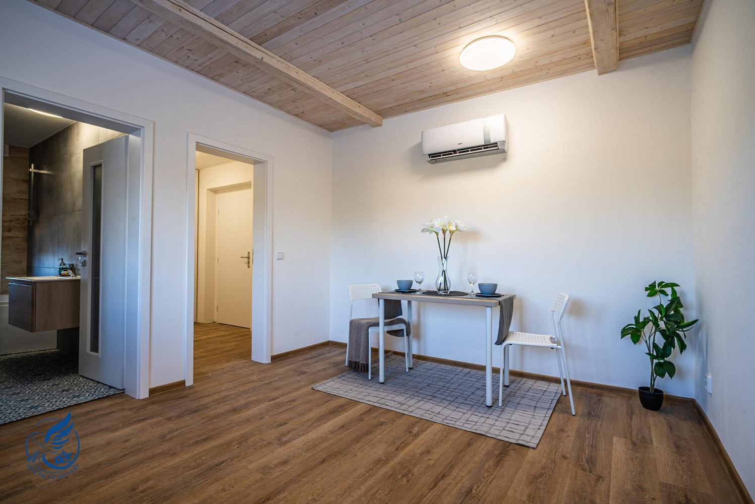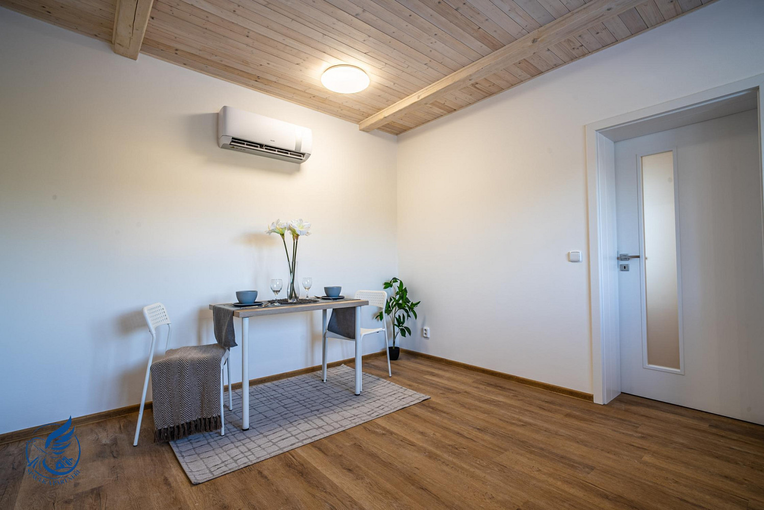 Pojďme se na ně blíže podívat. Tato zcela nová jednotka č.5 se nachází ve 2. podlaží zrekonstruovaného rodinného domu, který nabízí celkově 6 jednotek. Nadchne Vás unikátní koupelnou a výhledem při Vašem vaření, které dodá kuchyni jiné kouzlo. K jednotkám je vždy 1-2 parkovací místa i s elektro nabíječkou a každý nabízí svoji zahradu. Parkovací místa jsou ze zámkové dlažby a do areálu se vjíždí dálkově ovládanou bránou. Zahrady budou rozděleny dle přiloženého plánku.