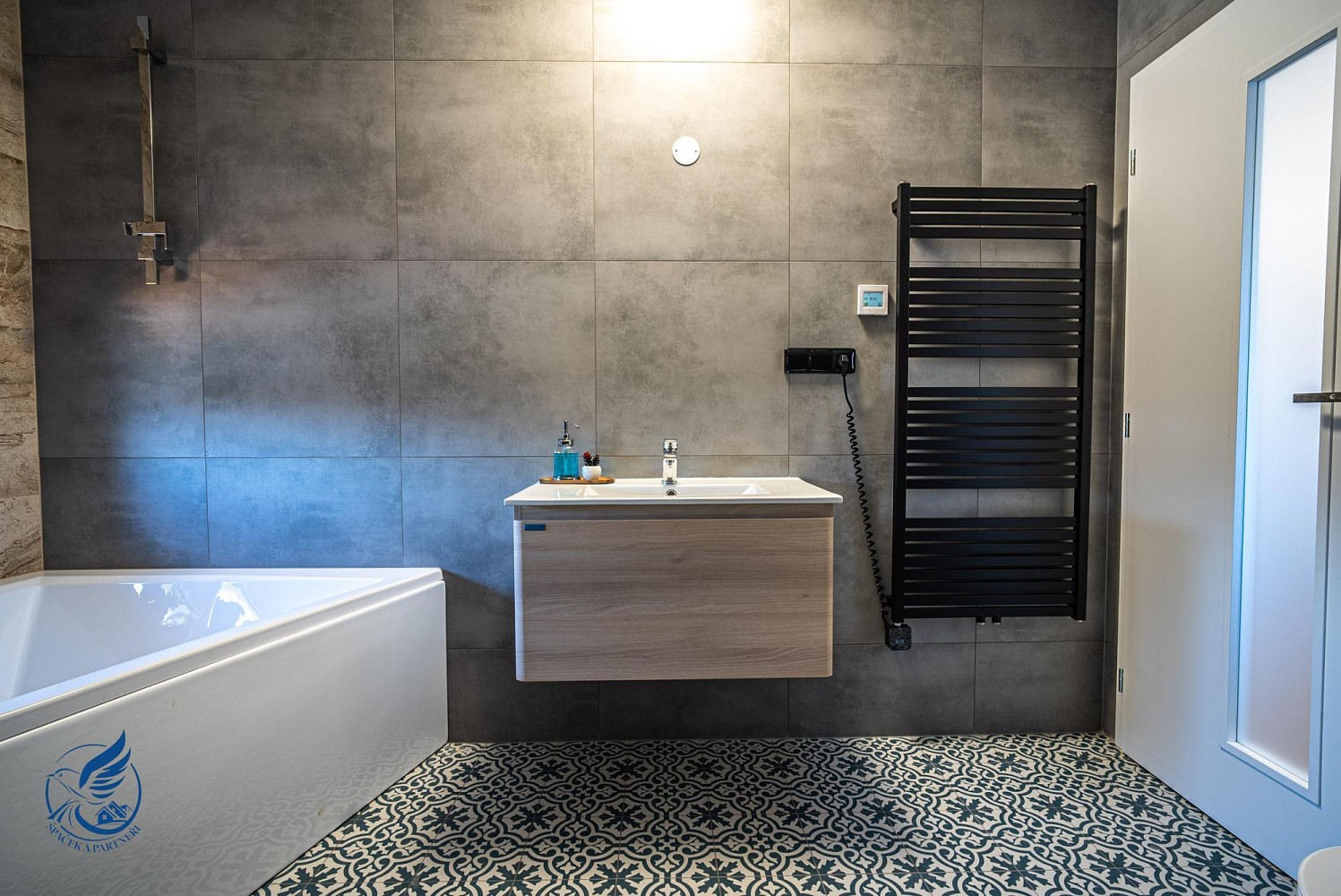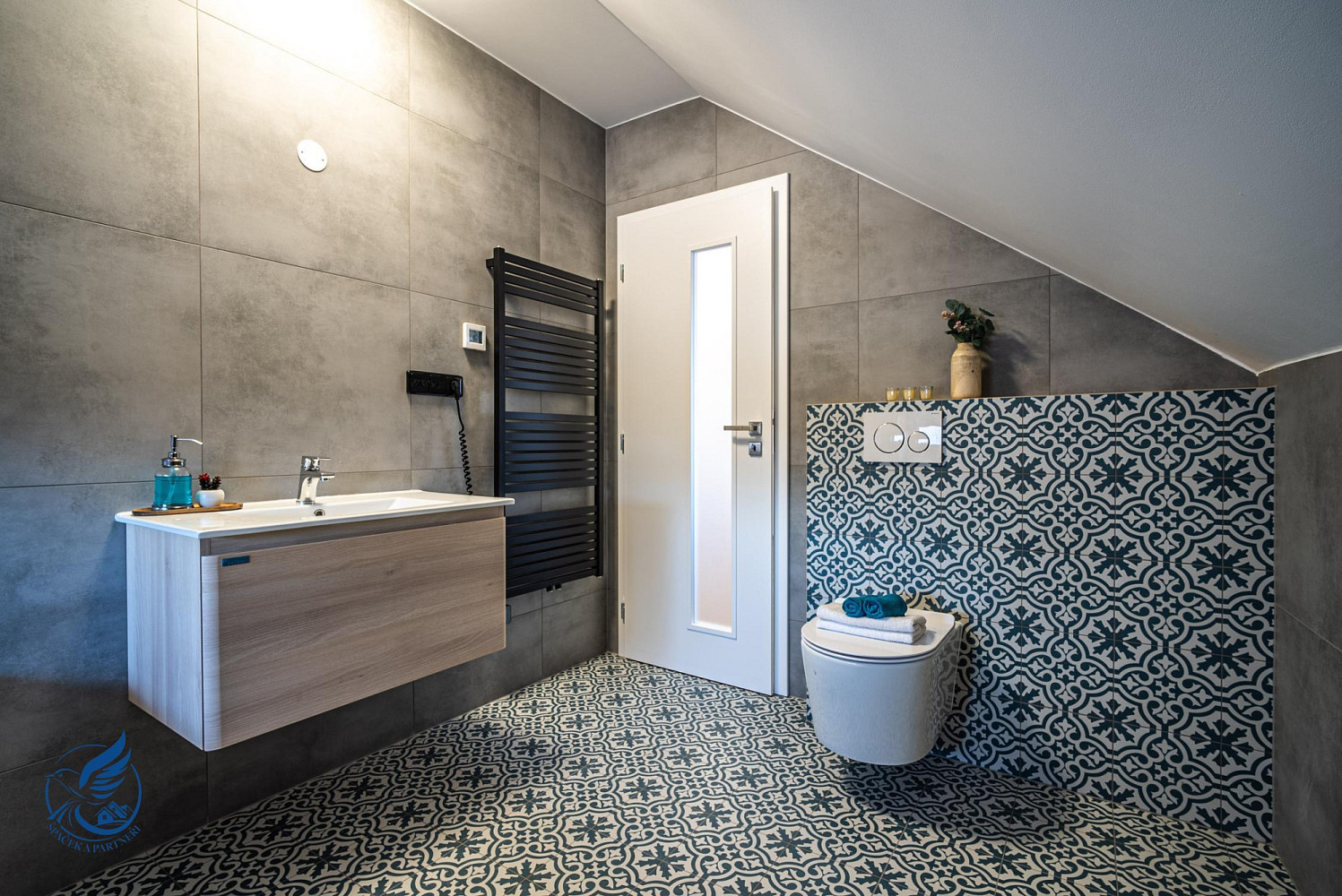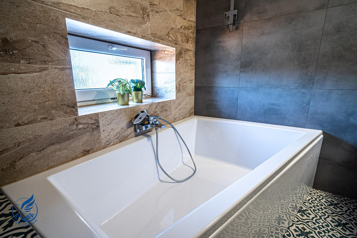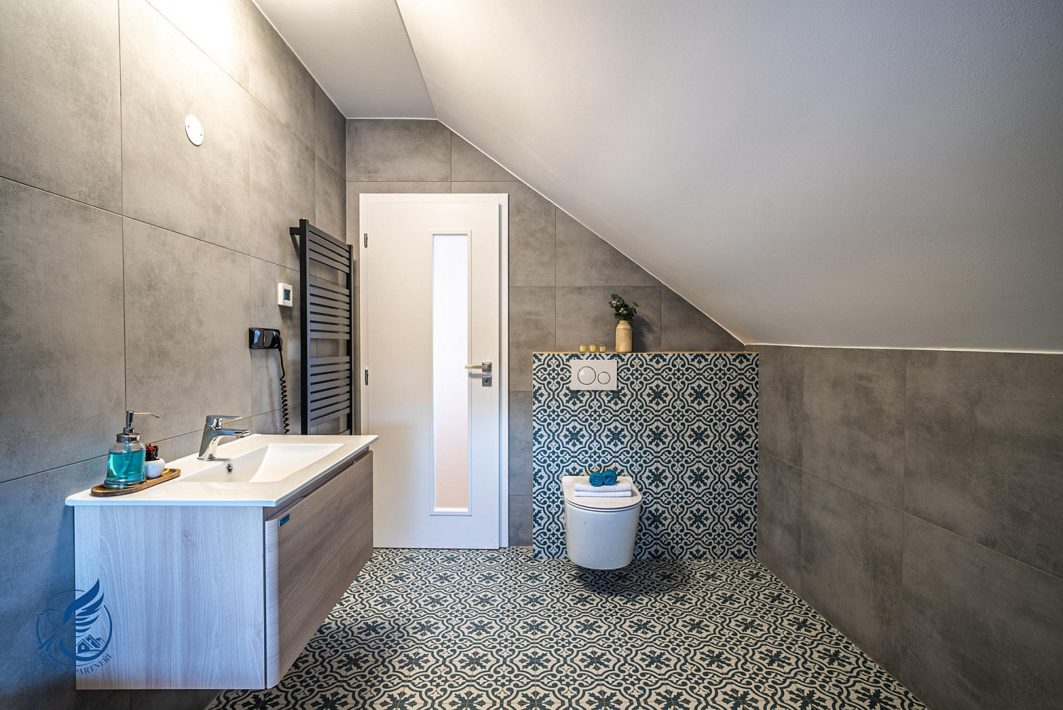 Pojďme se na ně blíže podívat. Tato zcela nová jednotka č.5 se nachází ve 2. podlaží zrekonstruovaného rodinného domu, který nabízí celkově 6 jednotek. Nadchne Vás unikátní koupelnou a výhledem při Vašem vaření, které dodá kuchyni jiné kouzlo. K jednotkám je vždy 1-2 parkovací místa i s elektro nabíječkou a každý nabízí svoji zahradu. Parkovací místa jsou ze zámkové dlažby a do areálu se vjíždí dálkově ovládanou bránou. Zahrady budou rozděleny dle přiloženého plánku.
