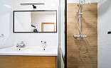 Byt se nachází v domě zkolaudovaném v roce 2021, přímo v centru města – a přesto v naprostém klidu, pryč od ruchu dopravy. Vše potřebné máte na dosah ruky, doslova jen pár kroků.