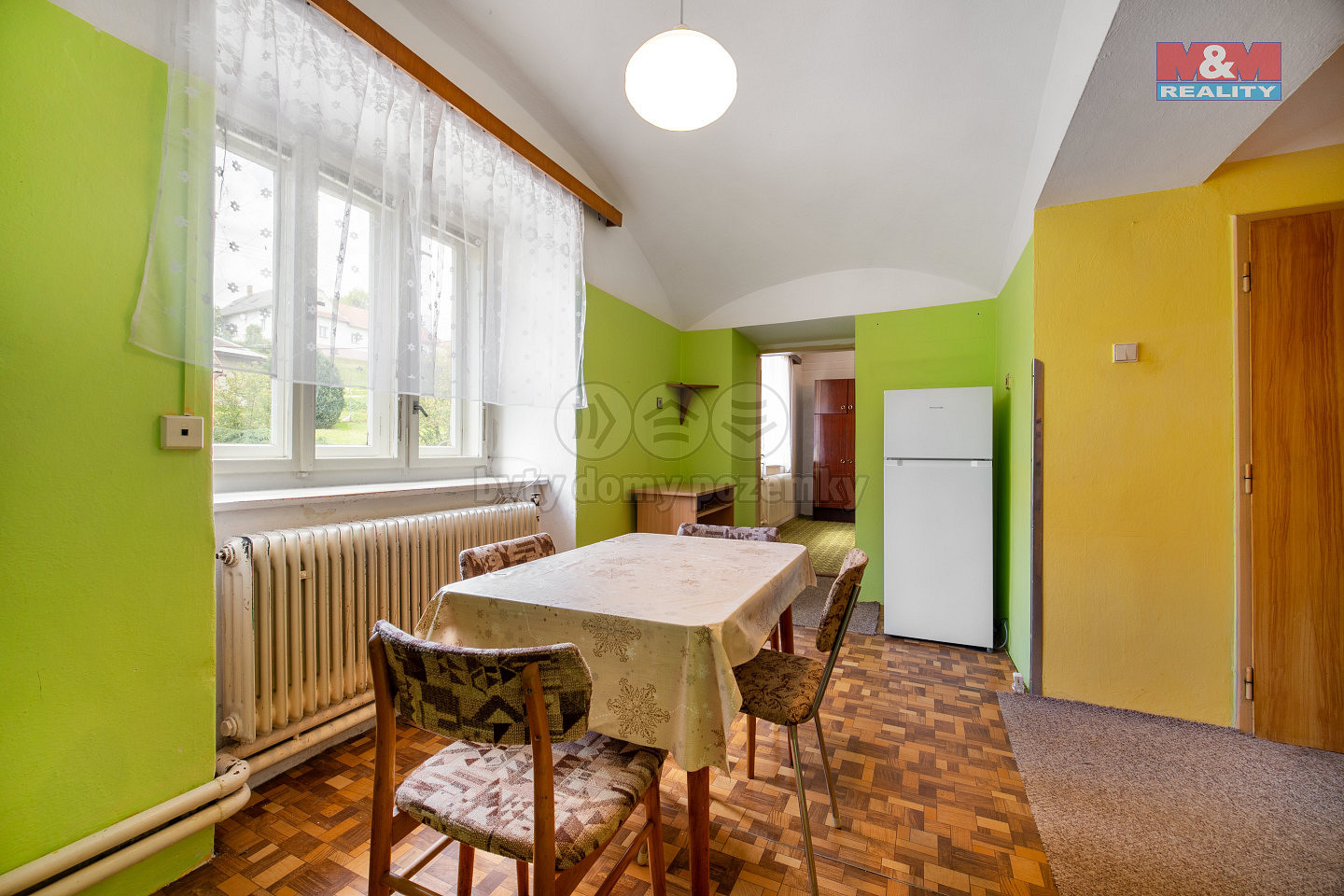 Nabízíme ke koupi prostorný rodinný dům s pozemky v obci Banín v okrese Svitavy. Jedná se o samostatně stojící podsklepený objekt o dispozici 4+2. Je udržovaný, vhodný k okamžitému nastěhování. K domu náleží garáž, stodola, chlév a kůlny. Prostorná půda nabízí další využití. Dům je napojen na el. energii, plyn, veřejný vodovod a kanalizaci. Vytápění plynovým kotlem nebo kotlem na tuhá paliva. Je vhodný k trvalému bydlení, k podnikání nebo hospodaření. Součástí prodeje je stavba s číslem popisným o zastavěné ploše 299 m², která je určená ke kompletní rekonstrukci nebo demolici.