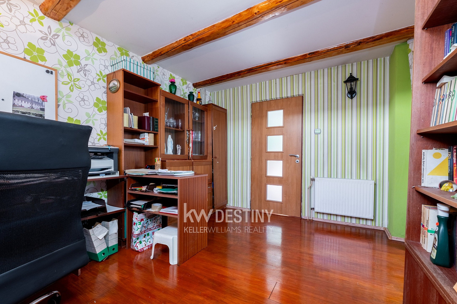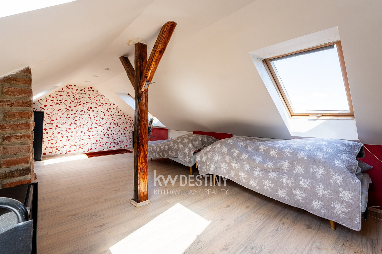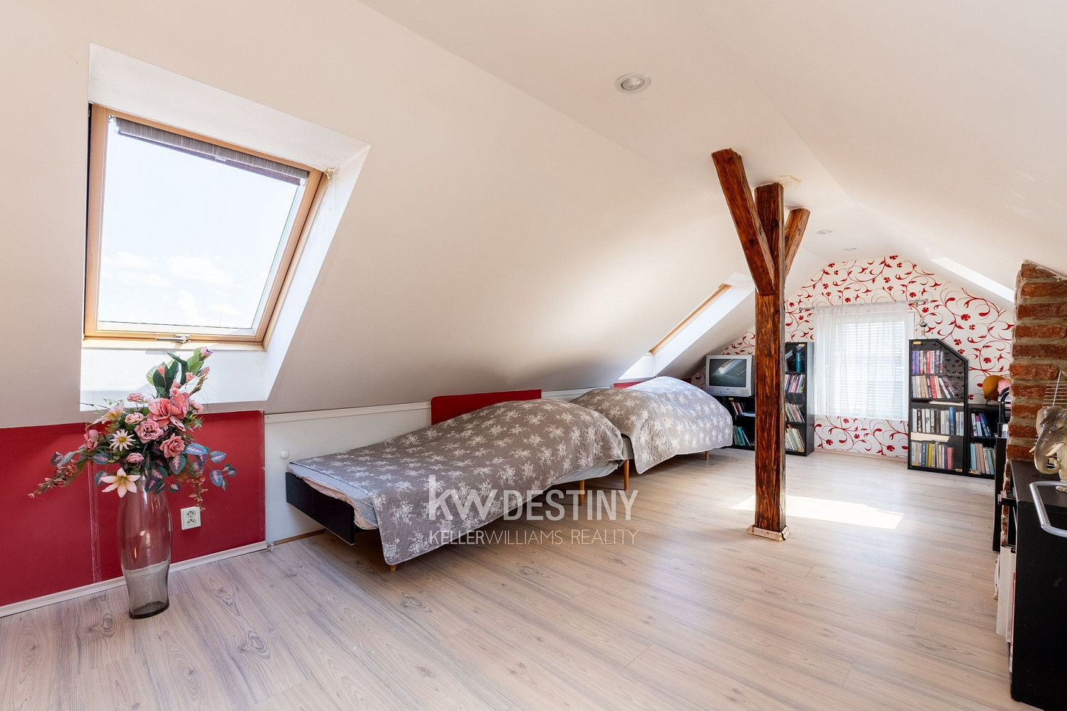 Velikosti místností jsou: kuchyně 14.5m², obývací pokoj 18,5m², ložnice 11,5m², pracovní pokoj 9,5m², předsíň 8,5m², koupelna + WC 6,7m², nově podkrovní místnost 24m² a podsklepení 3 m².