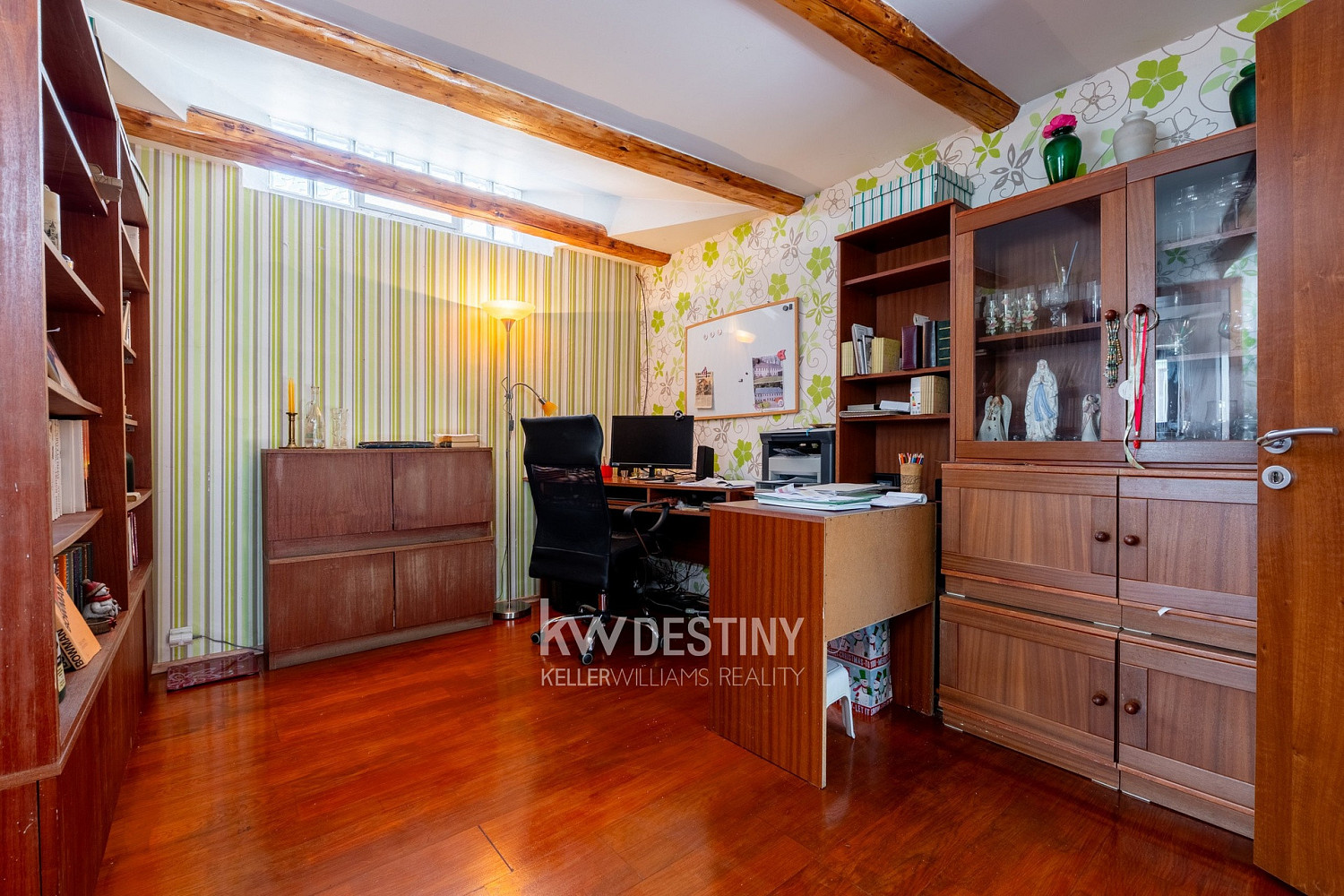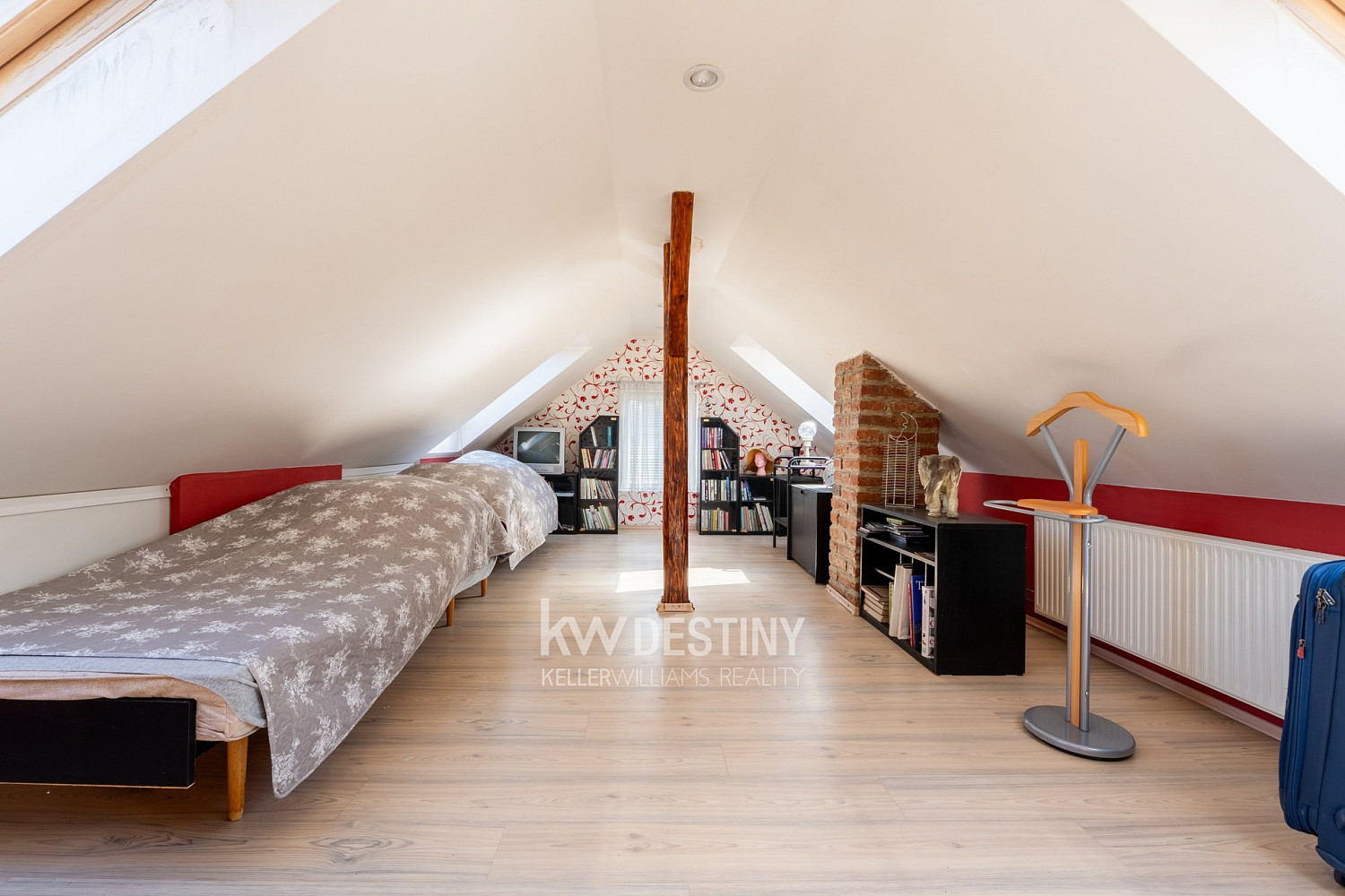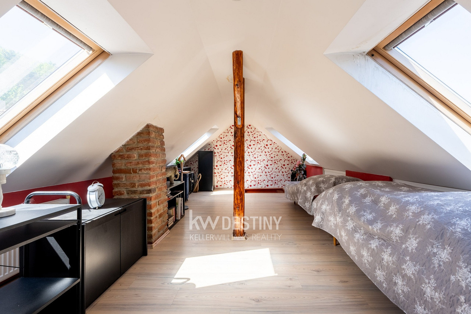 Velikosti místností jsou: kuchyně 14.5m², obývací pokoj 18,5m², ložnice 11,5m², pracovní pokoj 9,5m², předsíň 8,5m², koupelna + WC 6,7m², nově podkrovní místnost 24m² a podsklepení 3 m².