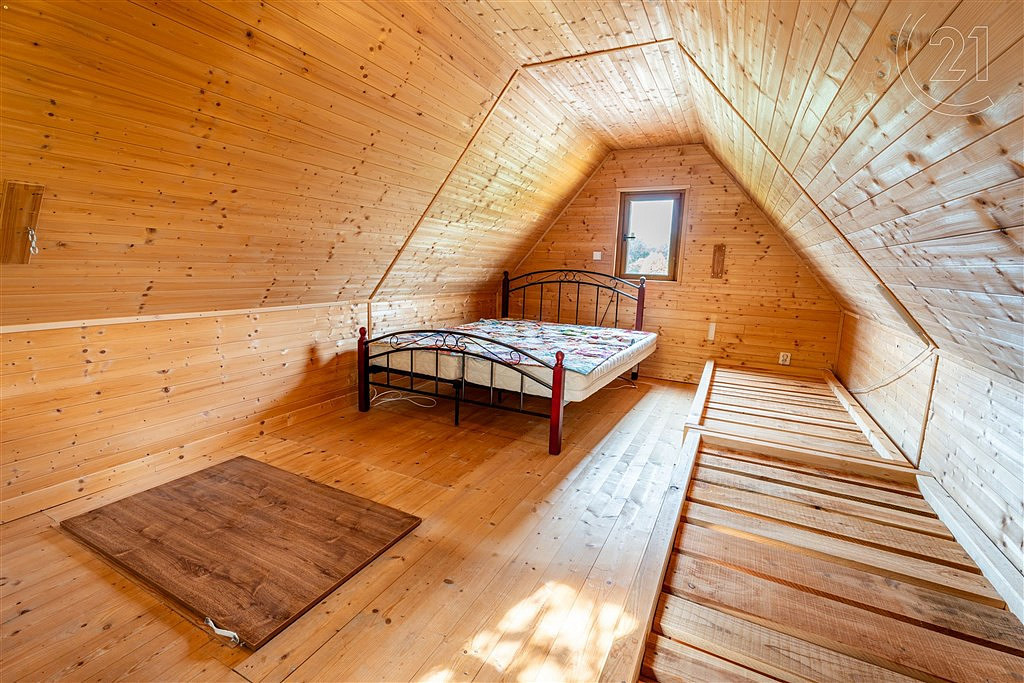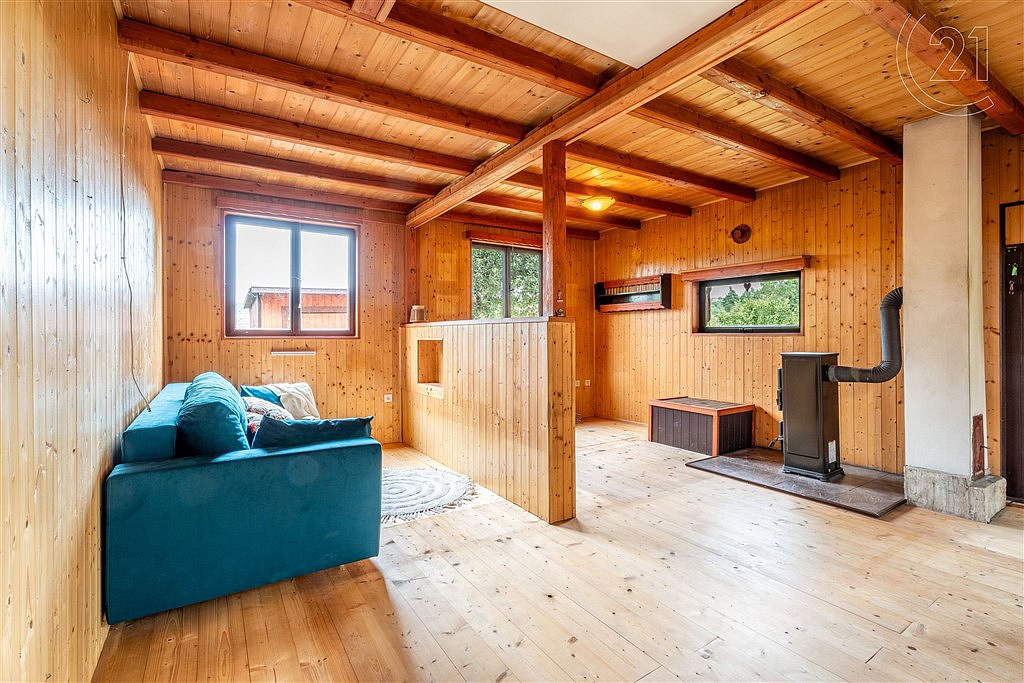Dispozice: 1 nadzemní podlaží + obytné podkroví. Pohodlné zázemí zajistí jak pro víkendové pobyty, tak i delší prázdninové dny. Atmosféru dokreslují kamna, která se postarají o příjemné teplo i v chladnějších měsících. Samozřejmostí je zavedena elektřina.