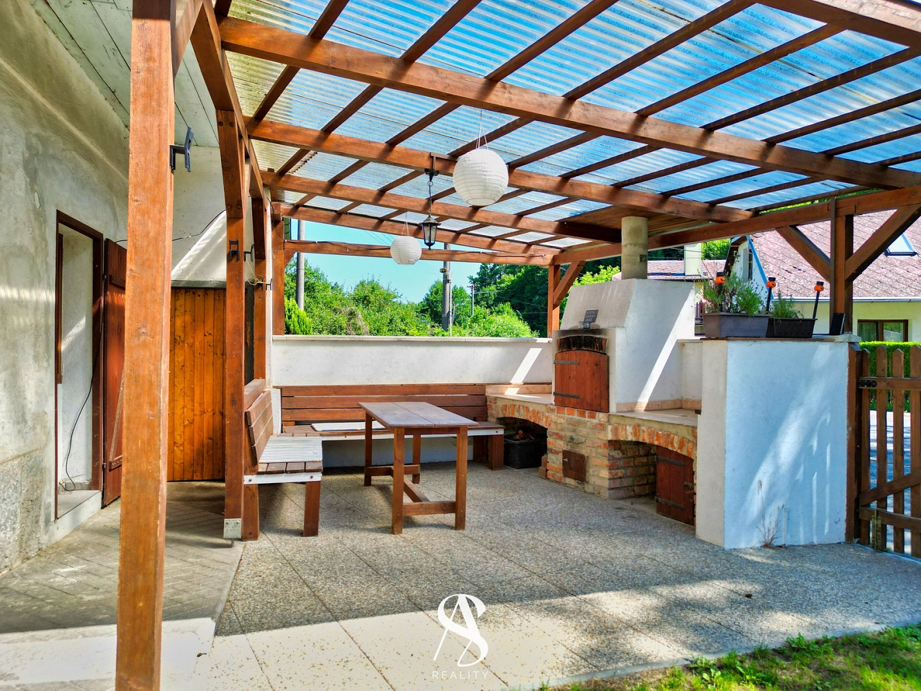 Na oploceném a travnatém pozemku, který je osázen okrasnými dřevinami se nachází zastřešené venkovní posezení s grilem a také dřevěný technický přístavek sloužící jako sklad nářádí a dřeva.