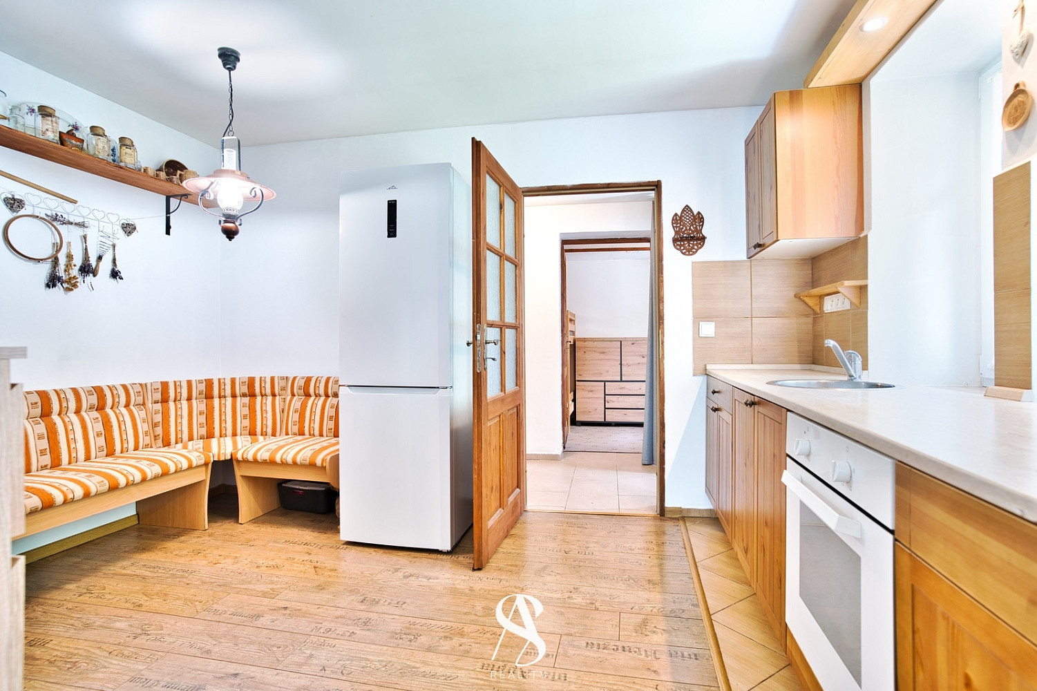 Obytná část domu, která prošla rozsáhlou rekonstrukcí, je dispozičně řešena jako vstupní a spojovací chodba se skladovací komorou, dva samostatné neprůchozí pokoje, průchozí obývací pokoj s krbem, ložnice s kuchyňskou linkou a jídelním koutem, koupelna se sprchovým koutem a umyvadlem a samostatná toaleta. Vytápění zajišťuje krb s rozvodem teplého vzduchu pomocí průduchů. Ohřev vody zajišťuje elektrický bojler. Kuchyňský dřez, koupelna i toaleta jsou napojeny na studnu s užitkovou vodou, přičemž vyhlášená studánka s pitnou vodou je jen několik desítek metrů od domu.