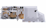 Druhá část domu, jejíž rekonstrukce již byla zahájena, nabízí budoucímu majiteli možnost dokončení dle vlastního vkusu a potřeb. Tato část se skládá ze společenské místnosti s krbem a vstupem do podkroví a samostatné místnosti. Vytápění zde zajišťují kamna na tuhá paliva. Kanalizace je svedena do ČOV umístěné na pozemku.
