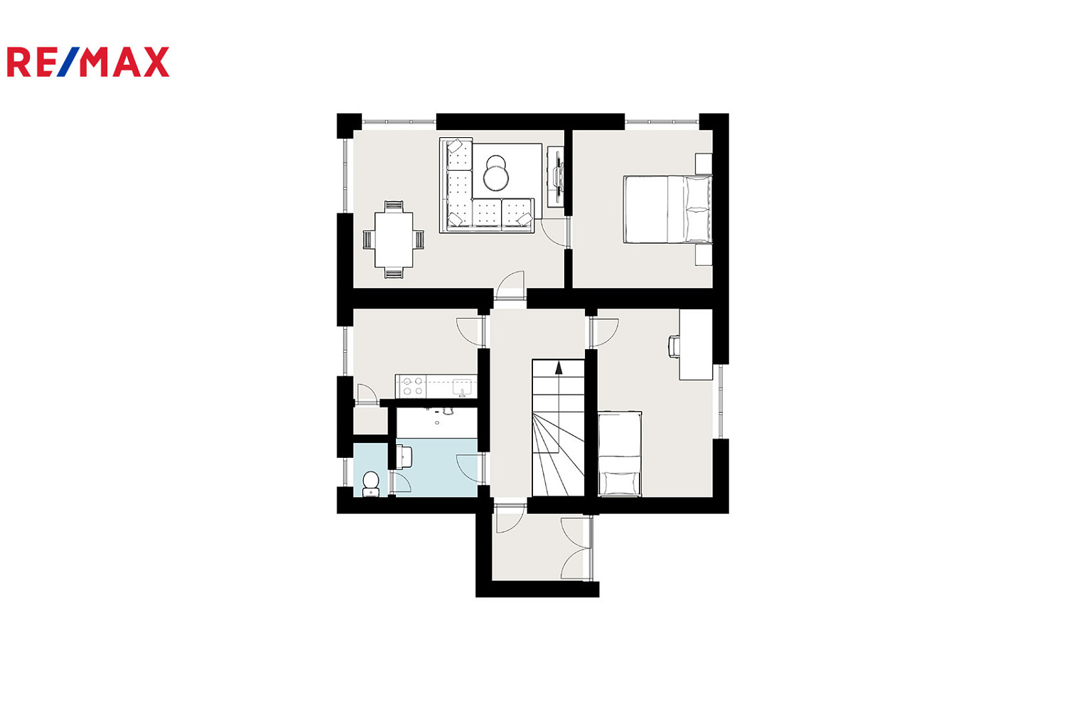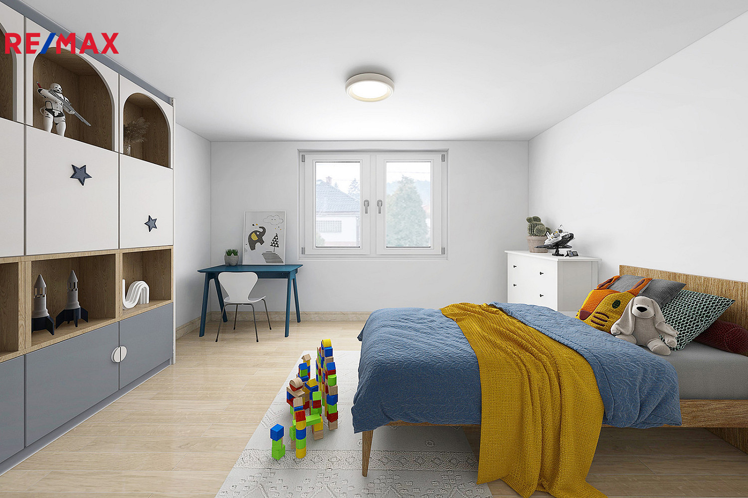 Horní podlaží nabízí dvě podkrovní místnosti, které mohou být využity podle vašich potřeb – jedna má (28,9 m²) a druhá (23,5 m²). K tomu je tu ještě pokoj o velikosti (16,4 m²), opět orientovaný na jih.