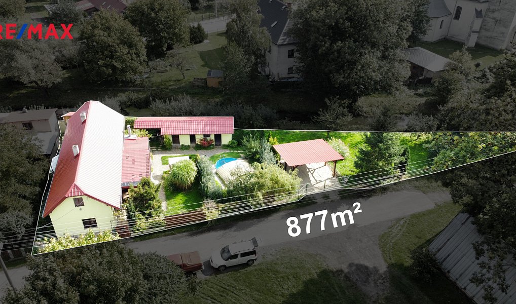Dům stojí na rovinatém a slunném pozemku o výměře 877 m², který nabízí dostatek prostoru pro zahradu, odpočinek nebo vybudování terasy či posezení. Na pozemku se nachází zděný zahradní domek o výměře 31 m², který může sloužit jako dílna, sklad, letní kuchyň nebo prostor pro hobby aktivity.