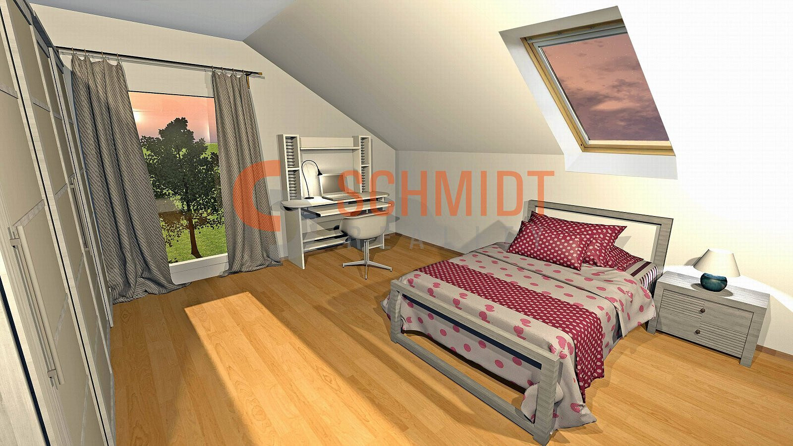 Druhé nadzemní podlaží tvoří tři pokoje, ložnice s šatnou, koupelna (vana, sprcha, wc).