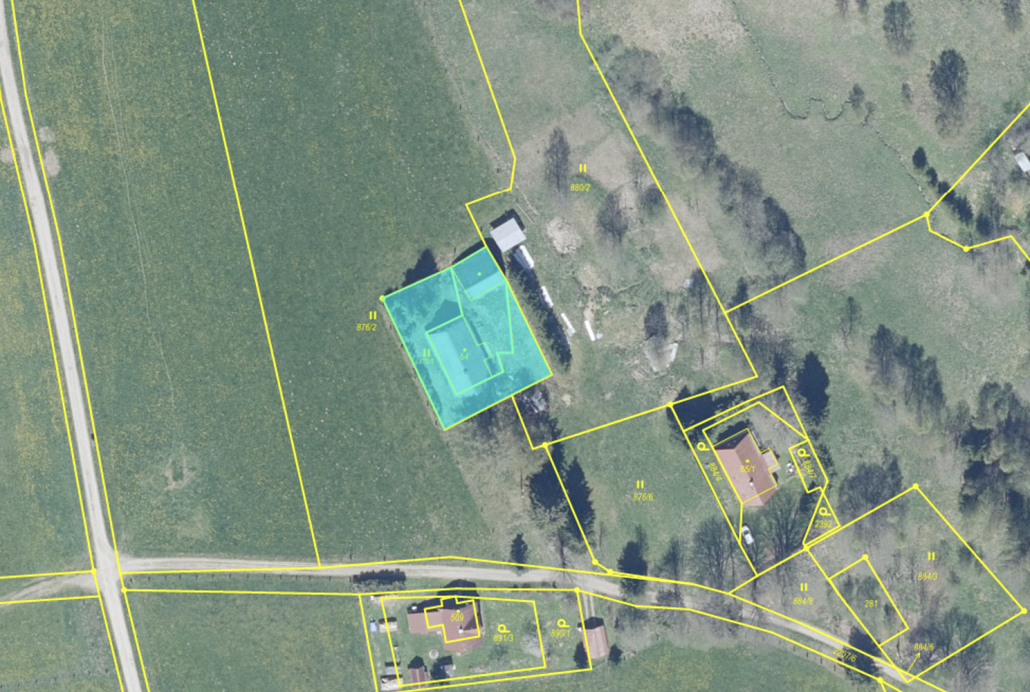 Pozemek tvoří ucelený celek, který nabízí dostatek prostoru jak pro nový rodinný dům, tak pro rekreační využití.