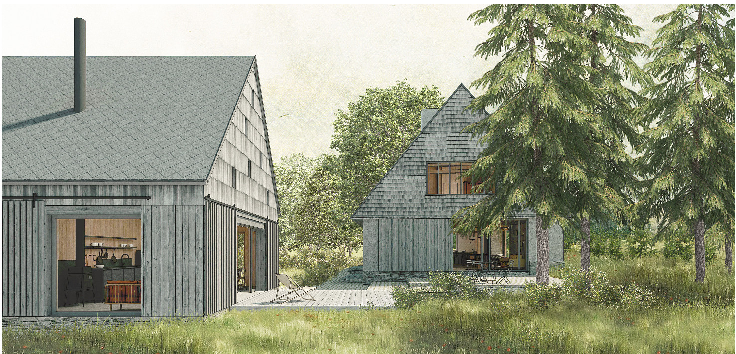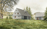 Majitel má k dispozici stavební projekt na realizace domu a domu pro hosty. viz vizualice a stavební povolení platné do 12/2027.