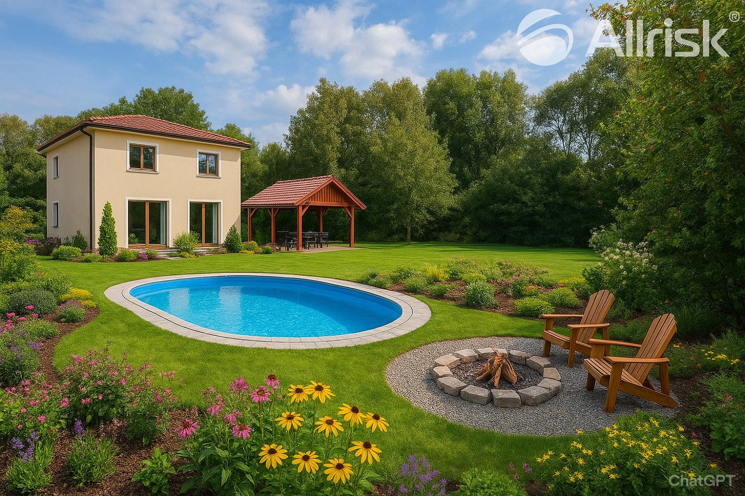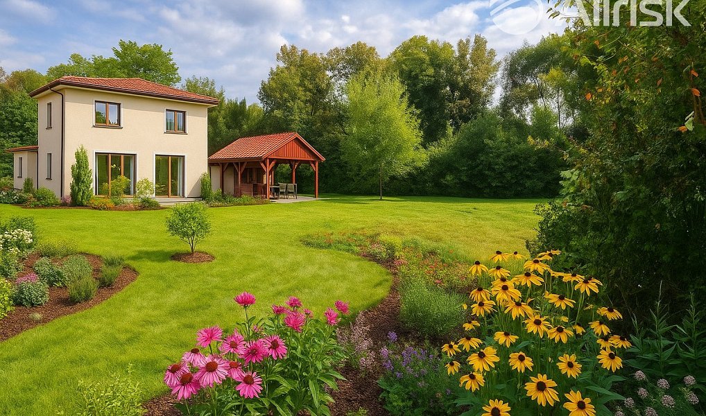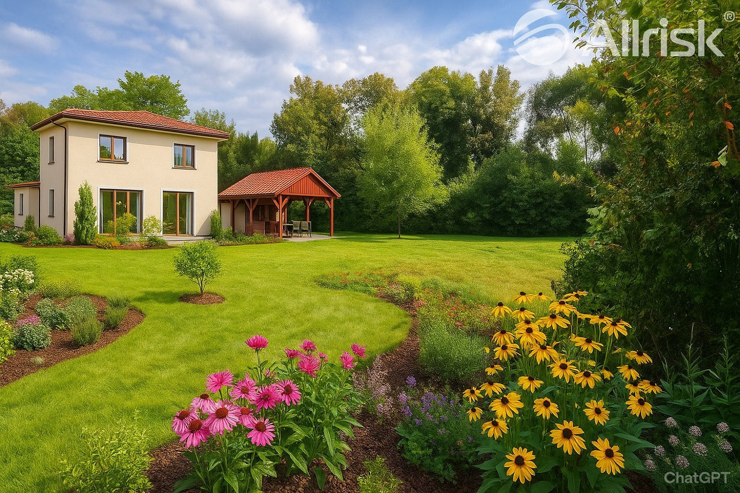 Tato zahrada je skutečným rájem – najdete zde pergolu pro letní posezení s rodinou a přáteli, dostatek prostoru pro dětské hry, odpočinek i pěstování květin nebo zeleniny. Součástí je také praktická dílna, kde si můžete splnit svá kutilská přání nebo mít vše potřebné vždy po ruce.