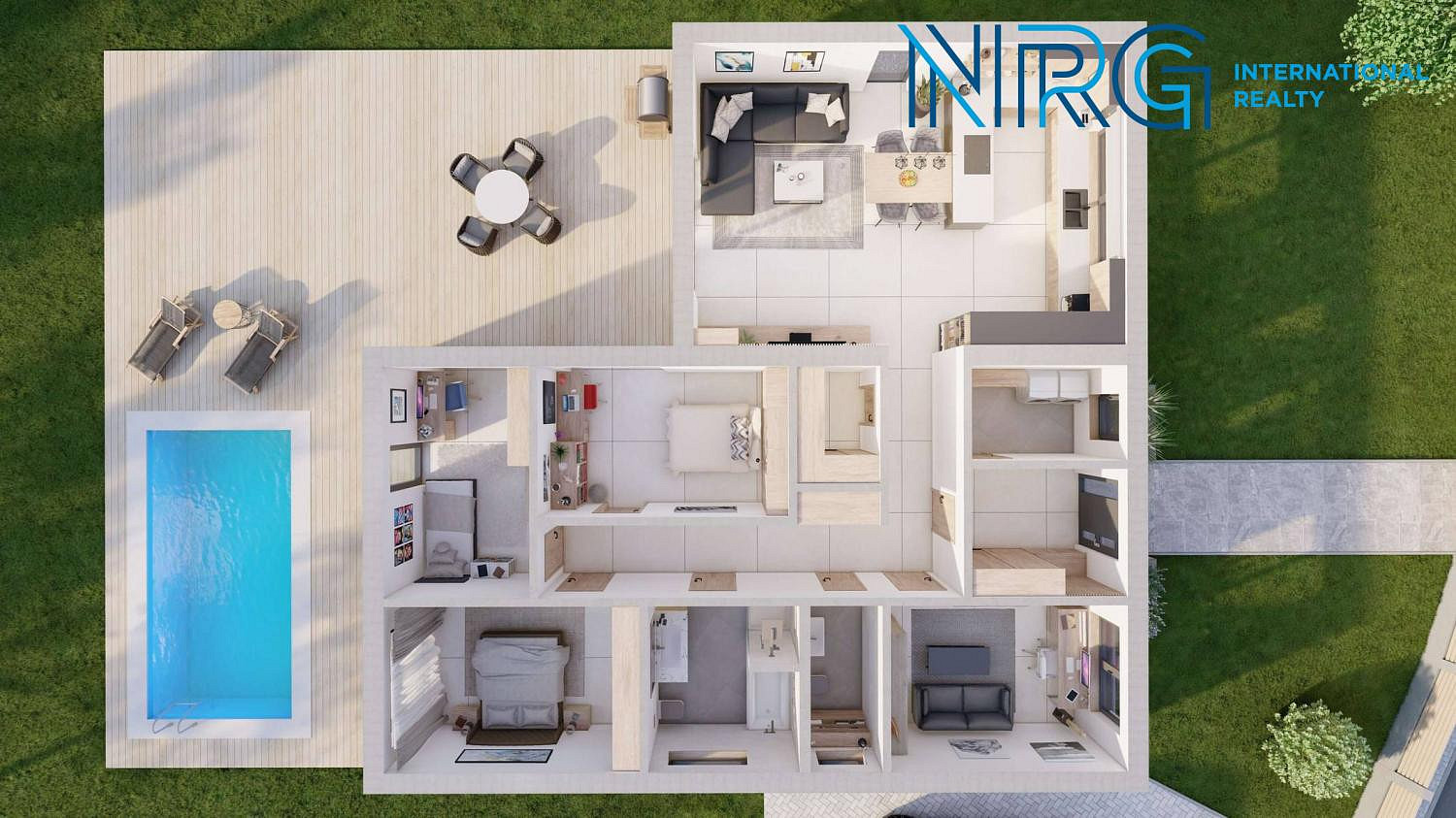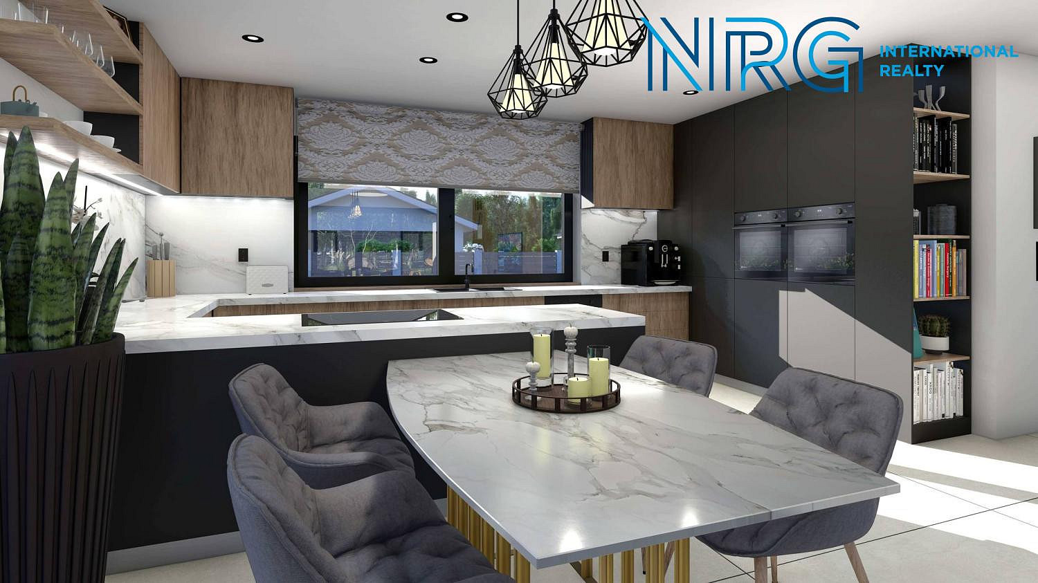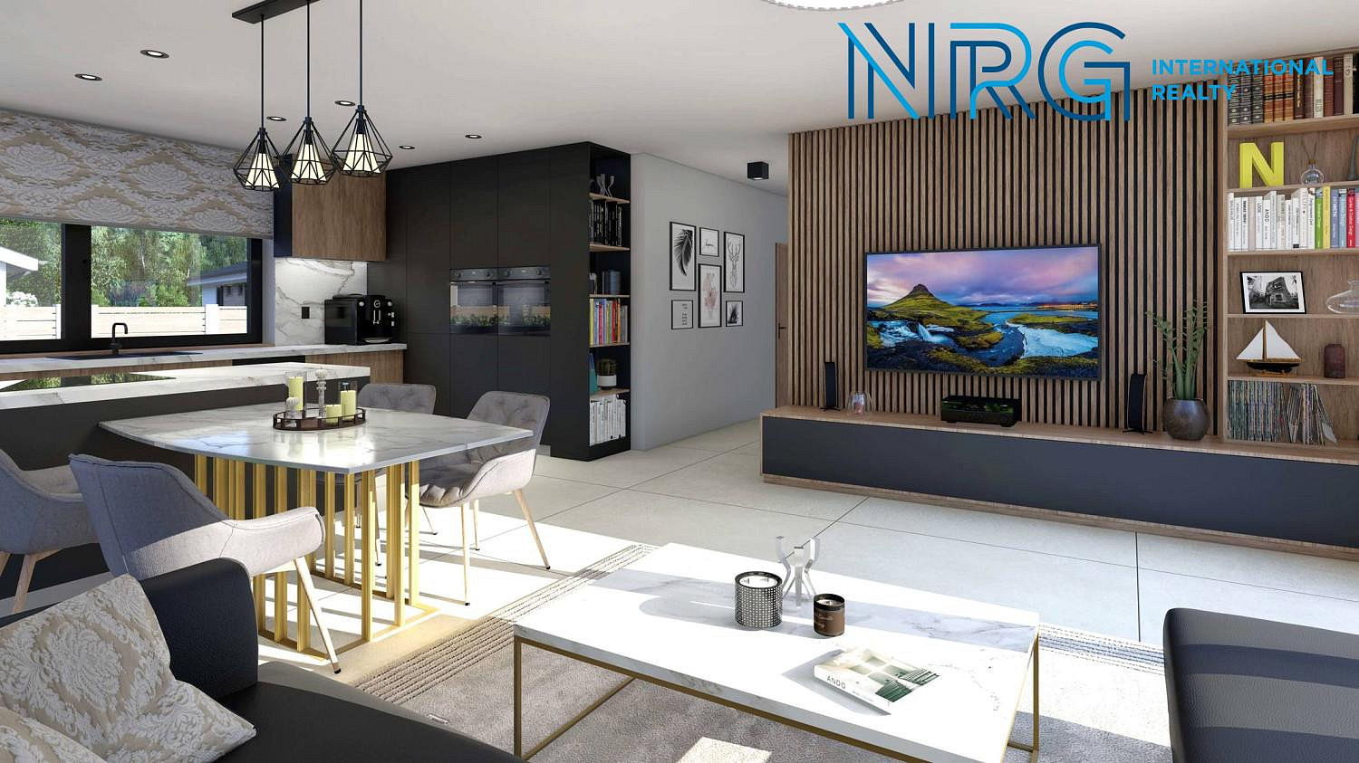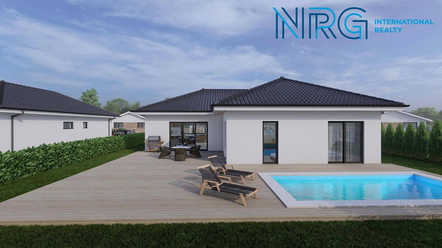 V krásné části mezi městy Chomutov a Jirkov, které se říká Beverly Hills můžete bydlet v novostavbě – bungalovu 5+kk o zastavěné ploše 162 m² a podlahové ploše 134 m². Fotografie jsou ilustrační. Dům se nabízí jako "shell and core"
