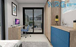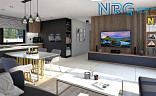 Obývací pokoj , z něhož je přímý vstup na terasu. Dále dům nabízí ložnici, pracovnu, dva dětské pokoje, šatnu, samostatné WC, koupelnu s vanou i sprchovým koutem a technickou místnost. V domě je i dostatek prostoru pro vestavěné skříně.
