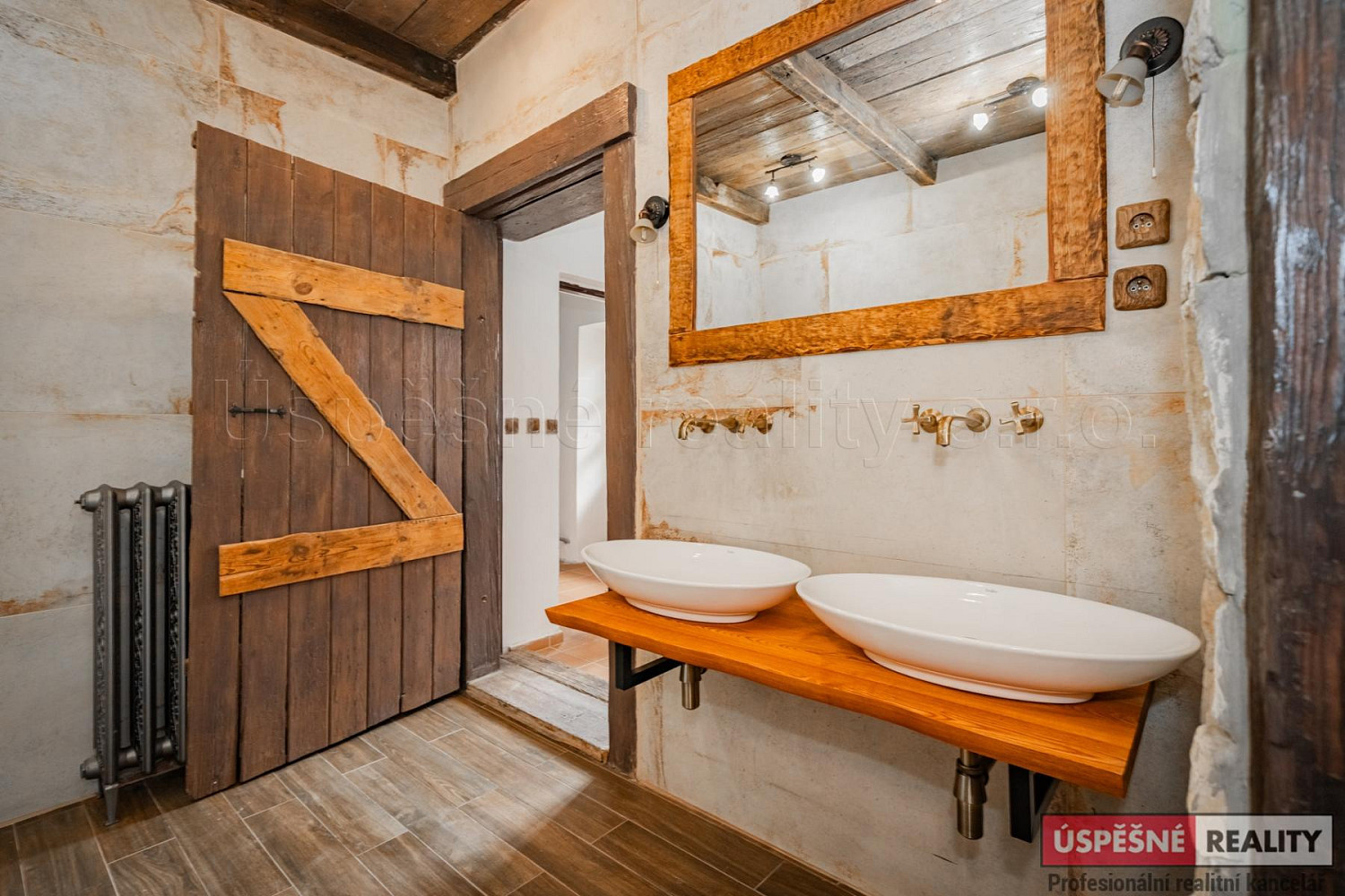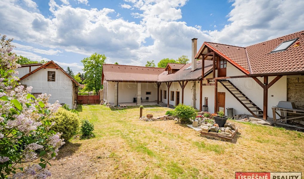 V exkluzivním zastoupení majitele Vám zprostředkujeme koupi venkovského sídla v obci Chožov, část obce Třtěno, okr. Louny. Nemovitost sestává ze zrekonstruovaného malebného stavení s obytným podkrovím o velkorysé dispozici 7+kk se dvěma koupelnami, dále z přiléhající vinárny, stodoly, menšího samostatného domku s číslem popisným, zděné kolny a z garáže pro dva vozy. Soubor vyjmenovaných budov tvoří uzavřený, harmonický celek poskytující dostatečné soukromí a je zasazen na náves, v klidné části této obce.