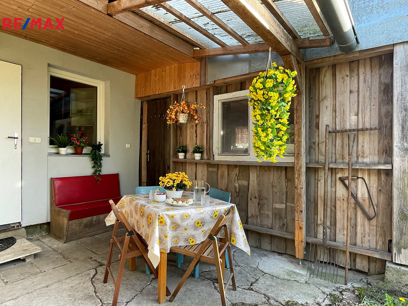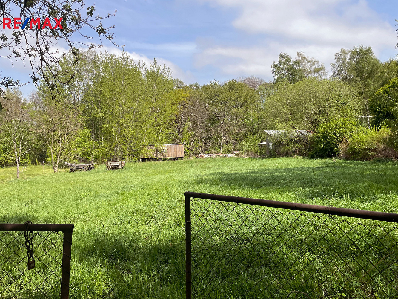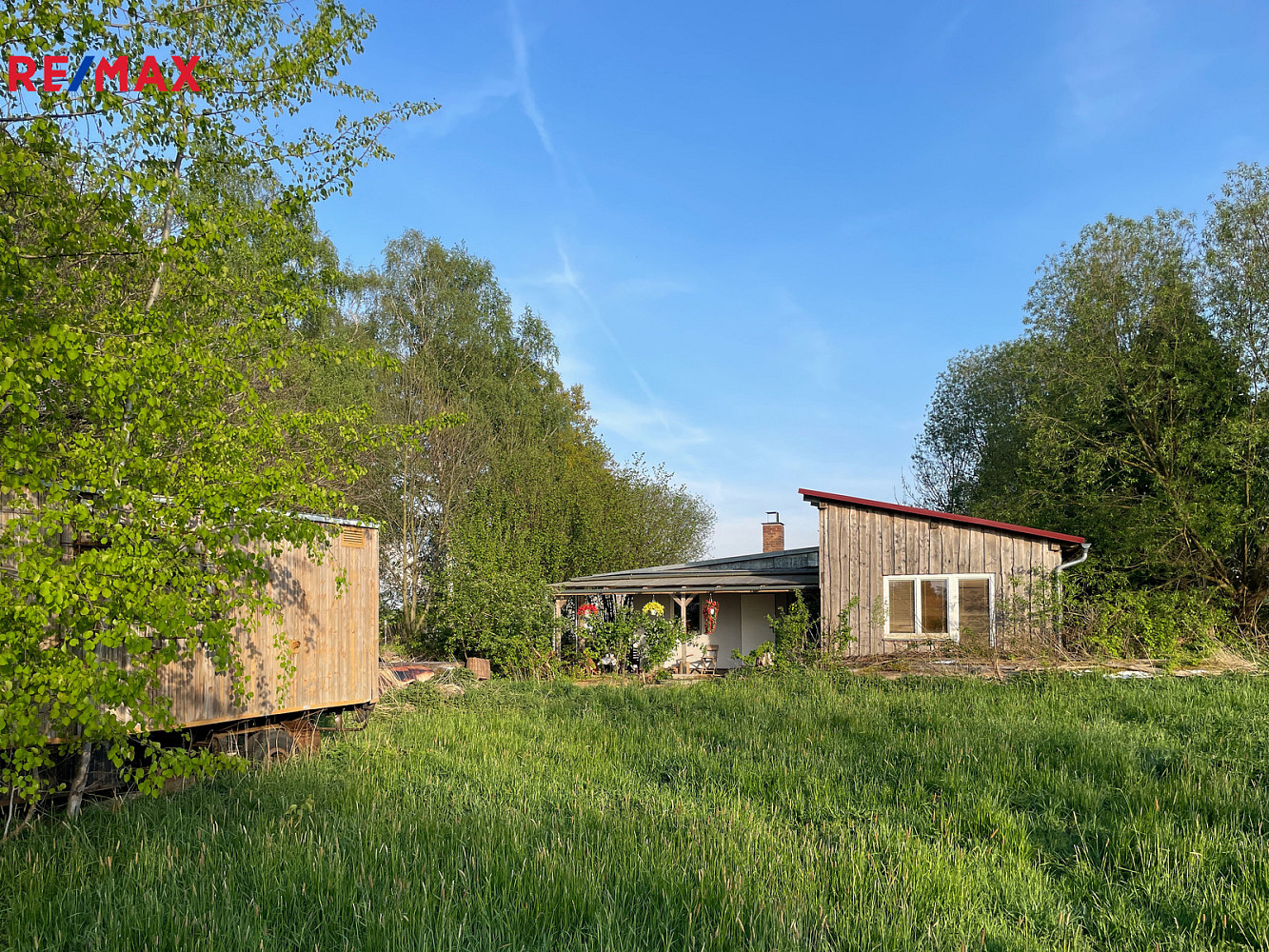 Na pozemku se dále nachází dlouhá dřevěná maringotka, kterou lze po renovaci využít pro včelařské, zahradní nebo obytné účely, a také dvě vlečky na kolech a několik hromad řeziva (fošny, latě a palivové dřevo).