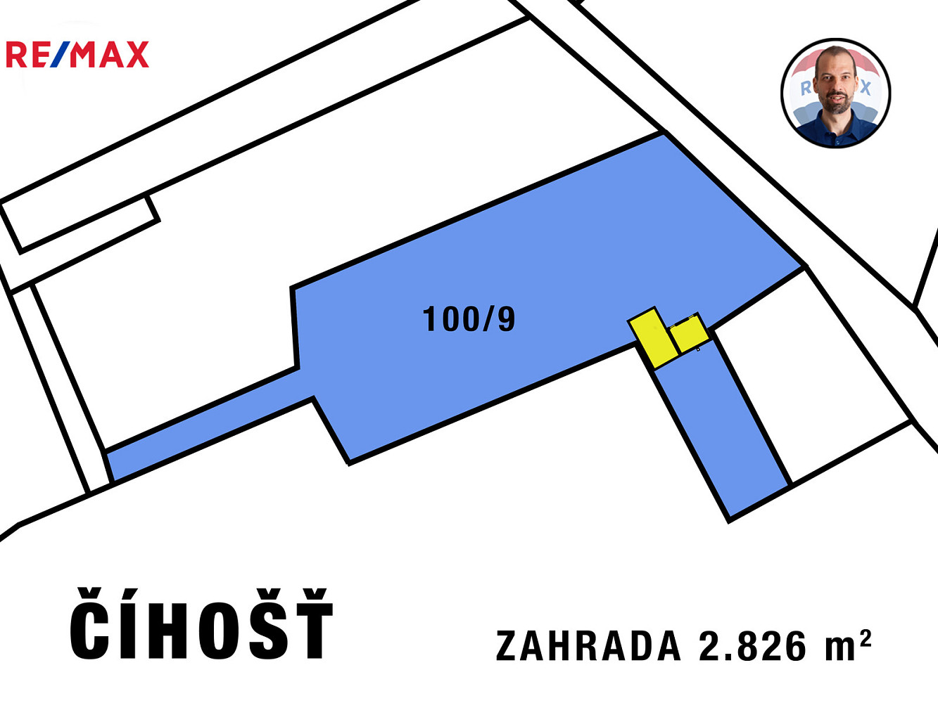 Pozemková parcela č. 100/9 o výměře 2.719 m² v obci Číhošť byla dosud využívána jako zahrada. Na stavební parcele St. 145 o výměře 107 m² stojí zděný zahradní domek (evidenční číslo 39) s užitnou plochou 21,4 m² a dřevěnou pergolou (cca 21,5 m²). Na domek navazuje dřevěná stodola (cca 46,5 m²) a za ní se nachází suché WC. Obytná část je napojena na elektřinu (230/400 V), obecní vodovod a vlastní kanalizační jímku. Stodola slouží jako sklad nářadí a materiálu.