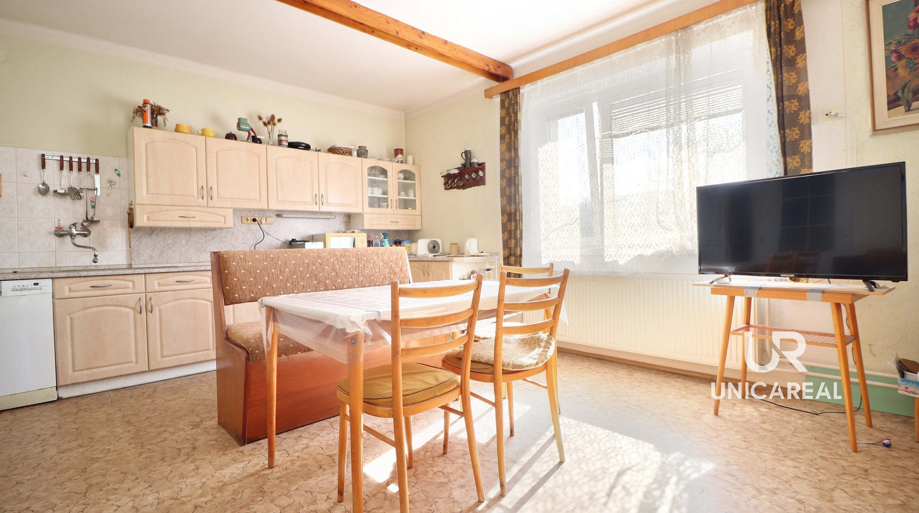 Dům lze využít po úpravách i jako dvougenerační. Dům je kompletně podsklepen a částečně nadúrovňový, tudíž lze minimálně 2 místnosti využít k bydlení, nebo alespoň jako dílnu. Střecha a krovy jsou v dobrém stavu a jsou zde instalována plastová okna. Interiér vyžaduje modernizaci. Vzhledem ke své specifické dispozici a prostorům jsou zde široké možnosti využití a realizace vašich představ. Ve 2. NP je balkon o rozměru 7m² orientovaný do zahrady. Výhodou je určitě i druhá stavba na pozemku, která je v současnosti využívaná částečně jako horní garáž. Dům má dispozici 5+kk, ale lze rozšířit o místnosti ve 2. NP i v suterénu domu. Díky výbornému umístění domu v obci jsou zde z oken pěkné výhledy na všechny světové strany. Pro lepší představu o dispozici a rozměrech interiéru, jsou součástí prezentace v inzerci i půdorysy a vizualizace.