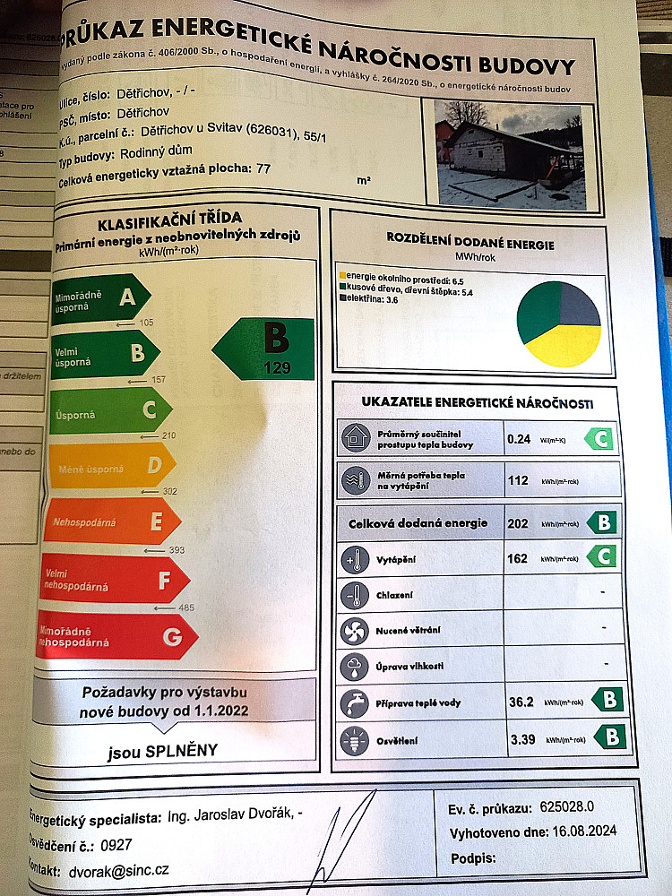 • Budoucí dům s nízkými energetickými náklady klasifikován v třídě B (Velmi úsporný)