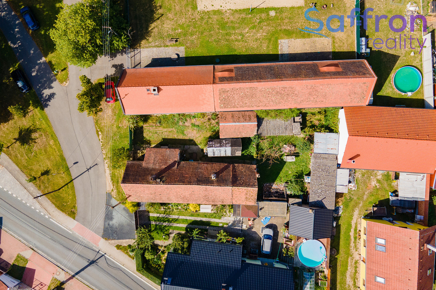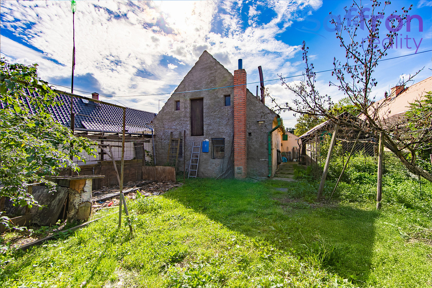 Za dvoukřídlou bránou se otevírá dvůr s parkováním na vlastním pozemku, na který navazuje menší chatka a několik hospodářských přístavků vhodných pro dílnu, sklad či dočasné bydlení během rekonstrukce. Samotný dům je před rekonstrukcí střechy, interiérů i rozvodů, což dává novému majiteli volnost navrhnout dispozice a standard přesně podle svých představ a plně využít potenciál zahrady i dvora k propojení interiéru s venkovním prostorem.