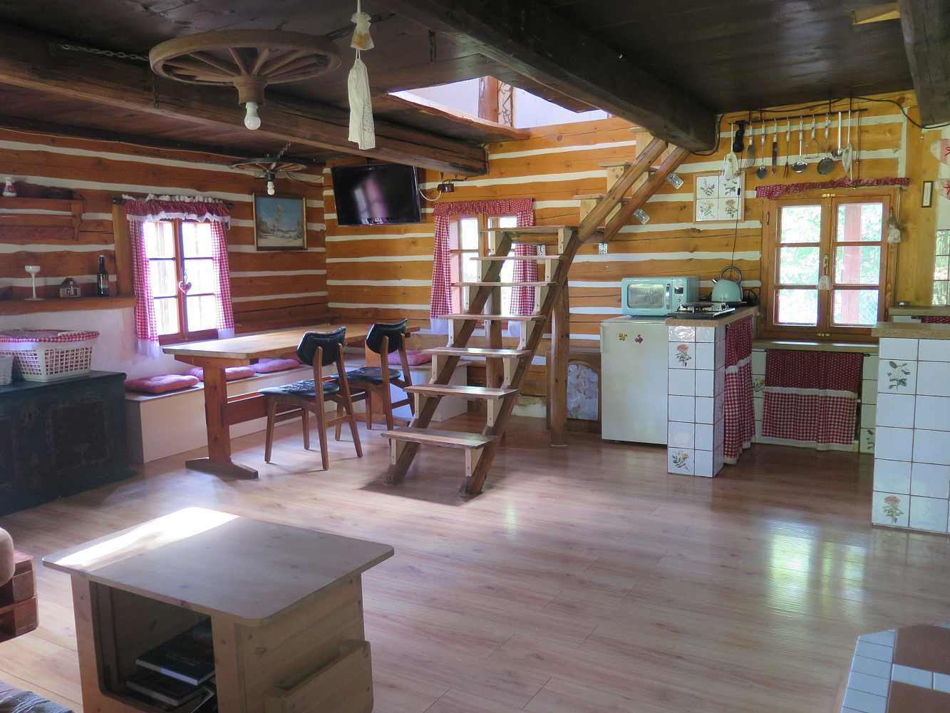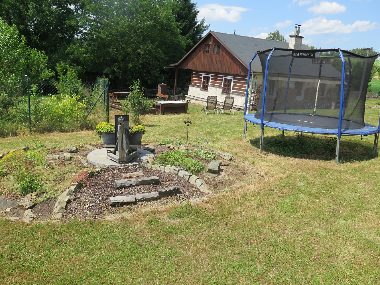 Na pozemku jsou 2 studny s pitnou vodou, z nichž jedna je přivedena do chalupy. Odpad je odváděn do septiku. V objektu je rozvedena elektřina a vytápí se kachlovou pecí, což dotváří autentickou atmosféru.
