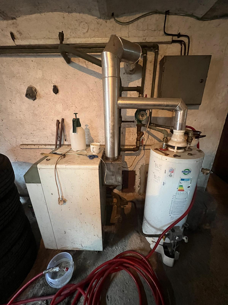 Dům je v původním stavu napojený na veškeré inženýrské sítě - elektřina, topení plynové i na tuhá paliva, voda z vodovodní přípojky, napojen na kanalizaci.