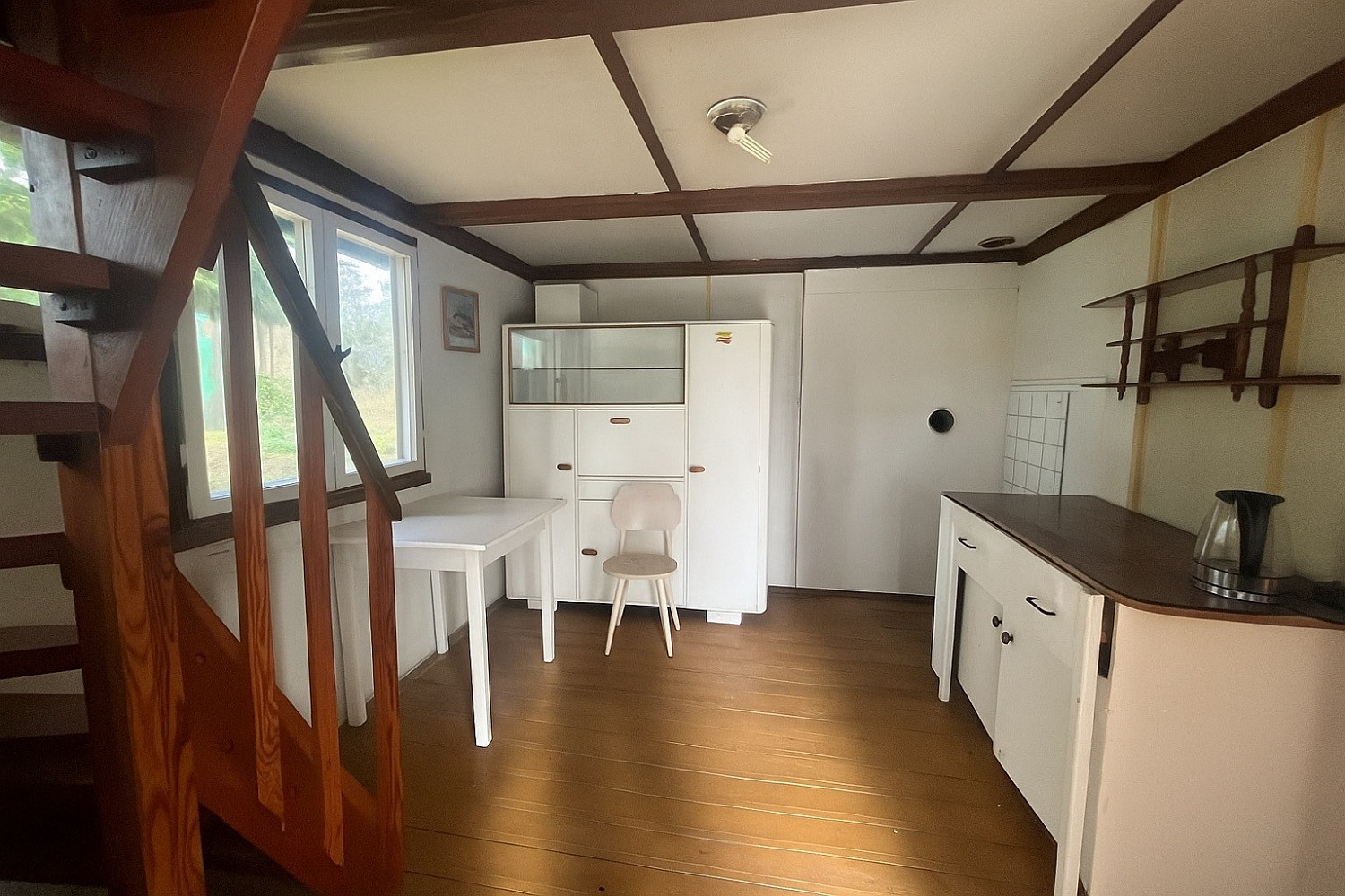 Součástí je také krytá veranda, prostorná terasa (24,1 m²), sklep pod chatou (12 m²) a kopaný sklep (7 m²), který perfektně slouží pro uskladnění potravin nebo nápojů.
