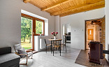 - Topení je řešeno plynovým kondenzačním kotlem a v obývacím pokoji si můžete zatopit krbovými kamny