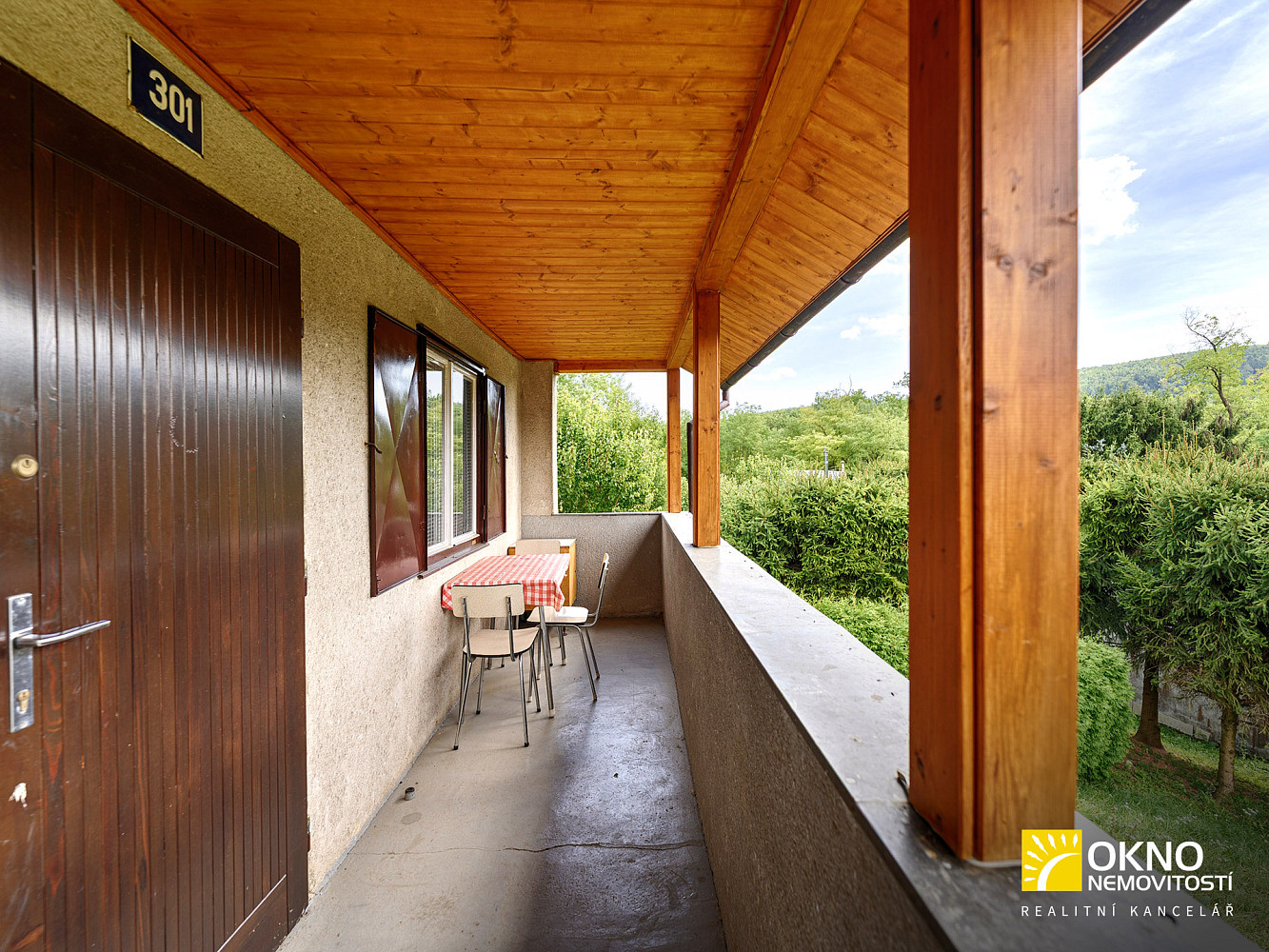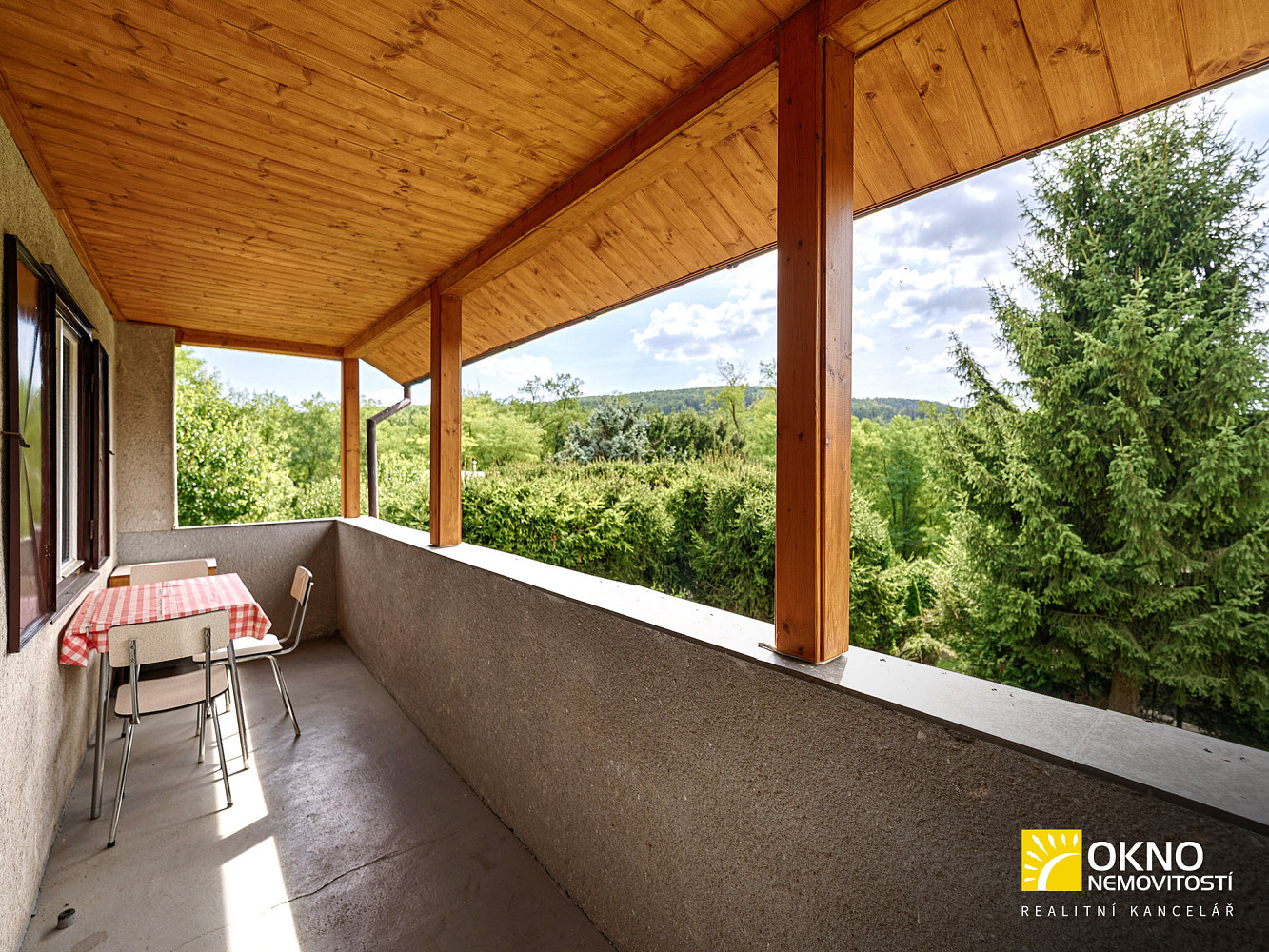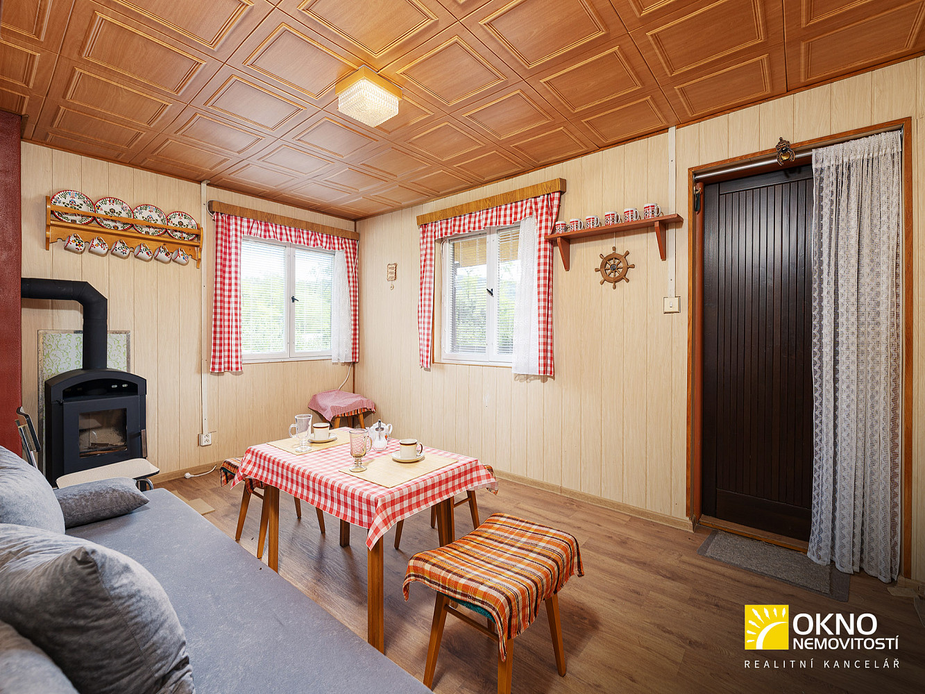 Interiér nabízí kuchyni, obývací pokoj a dva další pokoje, WC, spíž/komoru, sklep a terasu s výhledem do krásné zeleně. Stav objektu je velmi hezký a udržovaný. Chata stojí na vlastním pozemku a kolem ní se nachází krásně udržovaná obecní zahrada. Zastavěná plocha činí cca 49 m². Přístup zajištěn nezpevněnou obecní cestou.