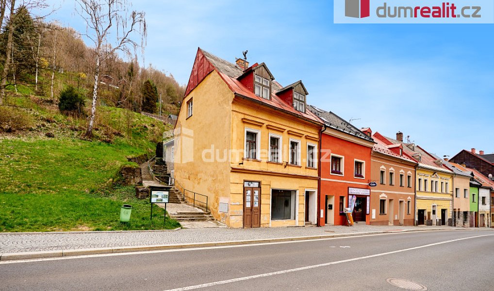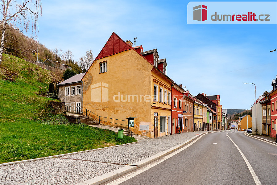 Dumrealit. cz Vám zprostředkuje prodej domu na hlavní třídě v krušnohorském Jáchymově. Podsklepený rodinný dům má v přízemí kromě chodby jednu velkou místnost užívanou jako nebytový prostor s vlastním vstupem, v mezipatře je WC s umyvadlem a jedna nedokončená místnost. V 1. patře je samostatný rekonstruovaný byt 2+kk o ploše cca 60 m, vybavený kuchyňskou linkou s indukční varnou deskou, el. bojlerem na ohřev vody a krbovými kamny. V koupelně je sprcha, umyvadlo a WC. Na podlaze je položena plovoucí podlaha, v koupelně dlažba. V mezipatře je také WC s umyvadlem a jedna místnost využívaná jako ateliér. Ve druhém patře je podkrovní byt 2+1 a půdní prostor. Část oken v domě byla vyměněna za plastová. V obci Jáchymov je bohatá občanská vybavenost, možnost sportovního i kulturního vyžití, do oblíbených lyžařských středisek Plešivec a Klínovec je to pár kilometrů. Sjezdovky jsou i přímo v obci, v okolí je mnoho běžeckých, cyklistických a turistických tras. Nemovitost je v souladu s platným zákonem zařazena do energetické třídy G, jelikož před zadáním do inzerce nebyl vyhotoven PENB. Tuto nemovitost lze hradit hypotečním úvěrem, který Vám rádi pomůžeme vyřídit v našem hypotečním centru. Ev. číslo: 643322.