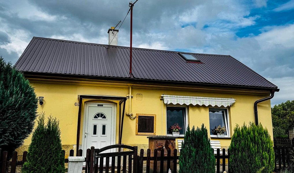 Na základě výhradní smlouvy Vám nabízíme ke koupi pěkný malý rodinný domek o zastavěné ploše 64 m², o dispozici 1+kk s koupelnou. Podkroví je upraveno pro přespání, výška místnosti je ale nižší. Topení v domě je řešeno elektrickými přímotopy a krbovými kamny. Dům je napojený na veřejnou vodovodní síť a obecní kanalizaci. Plyn je přiveden na hranici pozemku, do domu ale zavedený není. Před domem je oplocený malý dvorek a vedle domu samostatná místnost pro uložení kola a podobně.