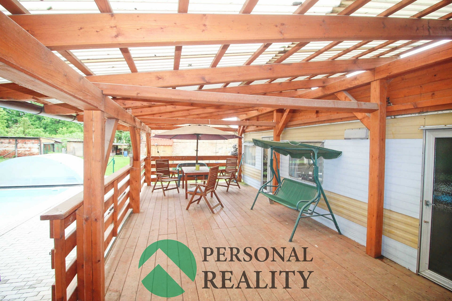 Nabízíme vám bydlení v okrajové části města Jesenice, s velkým udržovaným pozemkem a v soukromí. Dům se nachází na konci krátké ulice a je po rozsáhlé rekonstrukci. To nejdůležitější je nová střecha, střešní vazba kompletně opravena, zateplené stropy. Vnitřní prostory s novými rozvody topení, elektřiny a vody. Topení bylo zvoleno po vesnicku, takže krbové kamna s výměníkem a nová okna. Jen toto vám zajistí opravdu levné bydlení v městě. Mobilním dům na pozemku s bazénem tu nestojí náhodou. Když se majitelé rozhodli v roce 2015 pro rekonstrukci domu, tak si zde zařídili pohodlné bydlení s terasou a bazénem. Mobilní dům je napojen na kanalizaci a sezónní vodovod, krytý bazén je servisován, vytápěn tepelným čerpadlem. Pod pergolou se prý krásně sedí a i když počasí nedovolí, tak bazén (30m3), je připraven. Jediné co domu schází, je kabát, ale to je pár metrů. Pozemek je kompletně oplocen, sousedi jako by nebyli a ten klid. To je prý paráda. A přitom ve městě. Důvod prodeje je prostý, každý jednou zestárne a okolo domu je vždy dost práce. Takže podtrženo a shrnuto, máme super dům s dispozicí 3+1 bez větších investic. Máme garáž. Máme super pecka bazén, s vlastním oploceným pozemkem, máme pergolu velkou cca 40m² a mobilní dům pro návštěvy, nebo ty tiché chvíle v manželství . Za zmínku stojí dobrá dostupnost do Prahy, díky nově zbudované dálnici R6. Jesenice - Praha cca 35minut. Karlovi vary 30 minut. Prostě pokud se vám to líbí, tak volejte Rk. Hezký den
