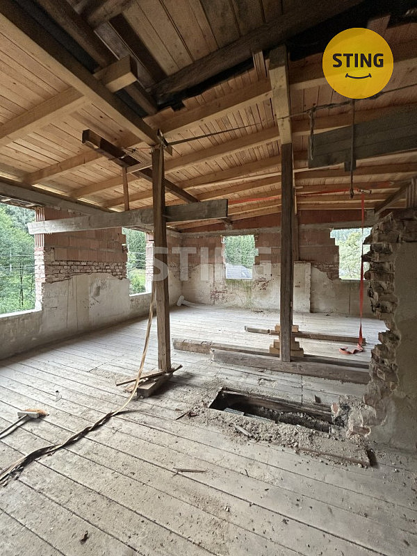 Nemovitost o třech podlažích je v současné době ve stádiu hrubé stavby, včetně okolních pozemků o velikosti 1187 m².