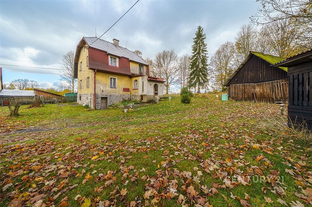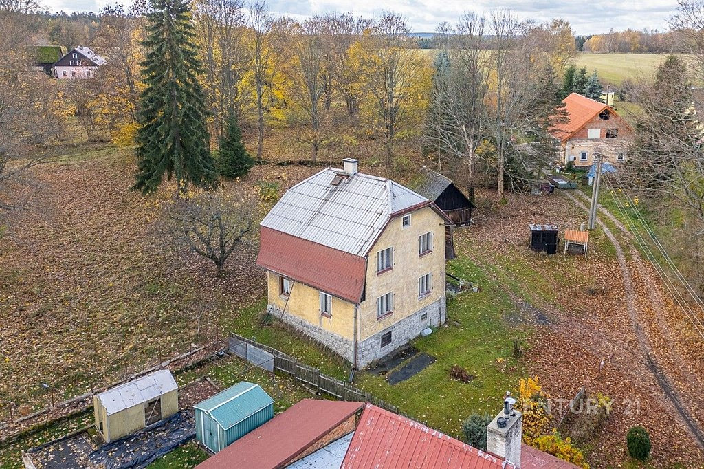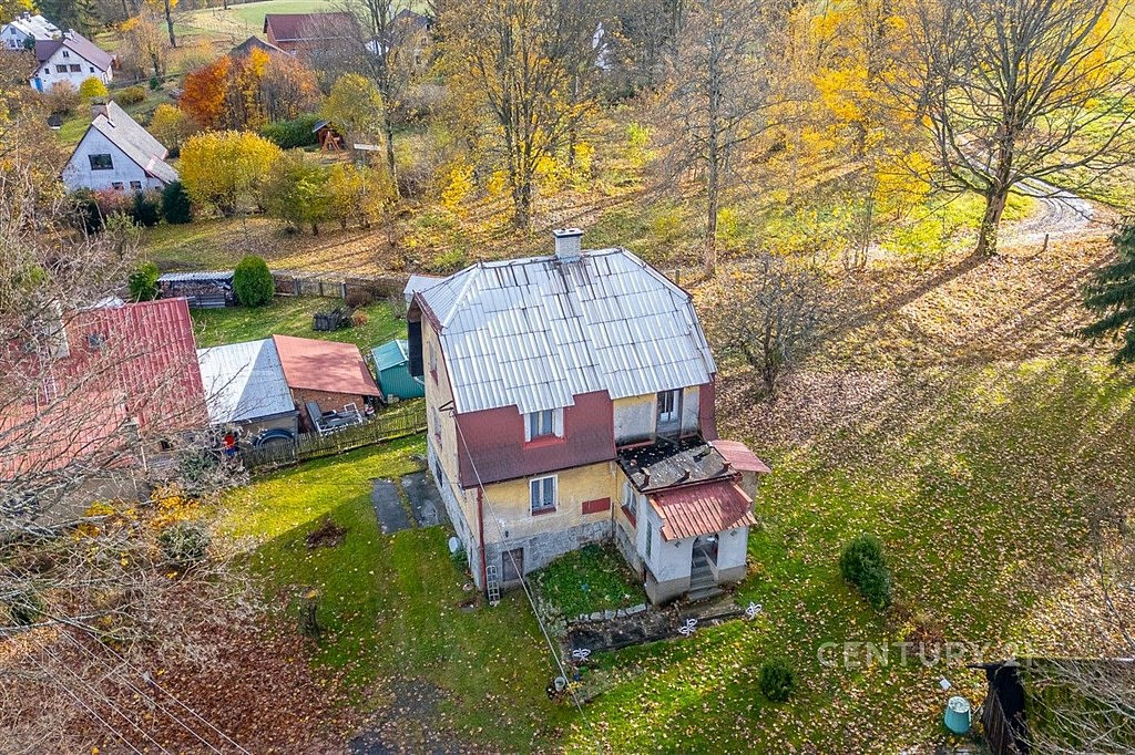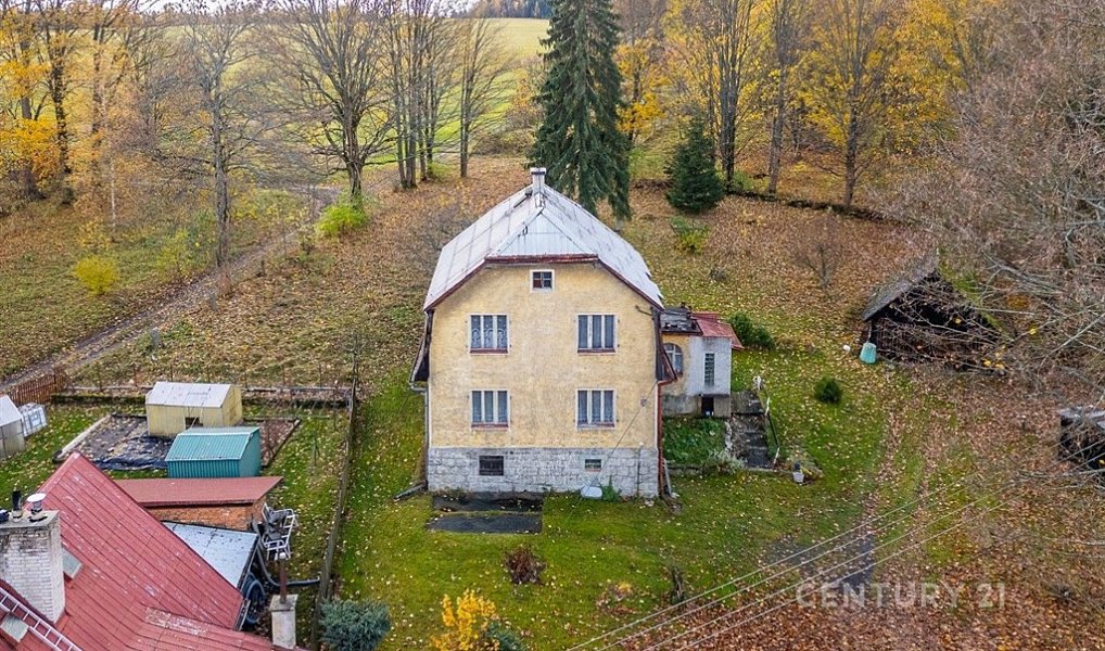 V malebné obci Háj u Jindřichovic, obklopené lesy Krušných hor, nabízíme k prodeji rodinný dům s dispozicí 4+1, který čeká na citlivou rekonstrukci. Dům má užitnou plochu 100 m², k tomu půdu o velikosti 27 m², která nabízí možnost vybudování dalšího pokoje. Sklep o rozloze 31 m² je přístupný jak ze zahrady, tak přímo z domu. V přízemí se nachází obývací pokoj, kuchyně a koupelna. V patře jsou dvě ložnice a jeden menší pokoj, ideální jako pracovna.
