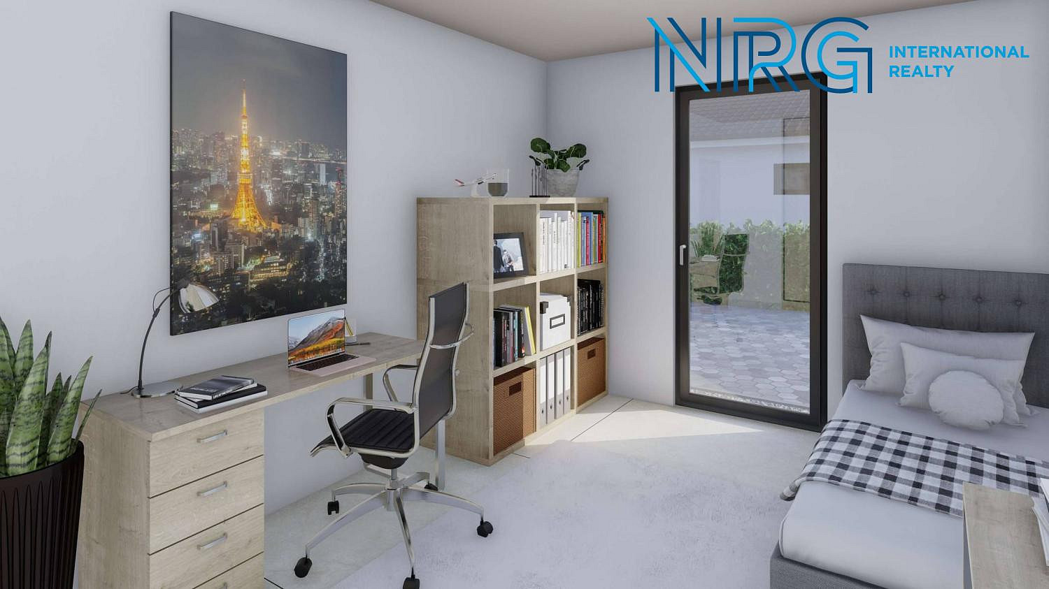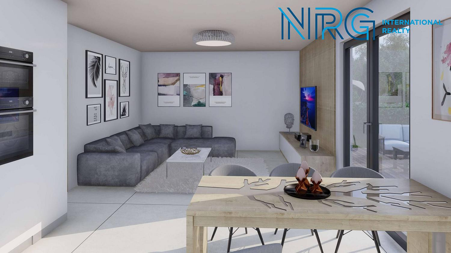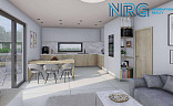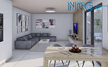 Obývací pokoj, z něhož je přímý vstup na terasu. Dále dům nabízí ložnici, dva dětské pokoje, šatnu, samostatné WC, koupelnu s vanou i sprchovým koutem a technickou místnost.