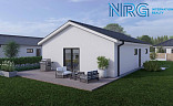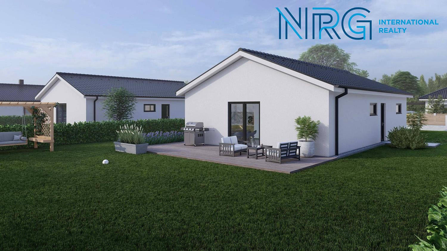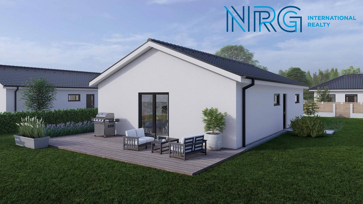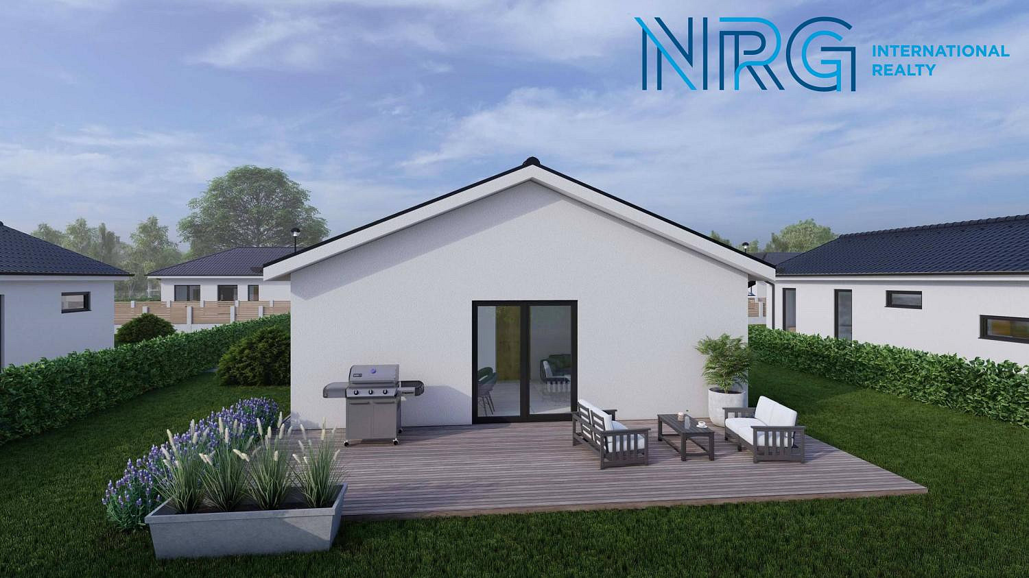 V krásné části mezi městy Chomutov a Jirkov můžete bydlet v novostavbě – bungalovu 4+kk o zastavěné ploše 115 m² a podlahové ploše 98 m². Fotografie jsou ilustrační. Dům se nabízí jako "shell and core"