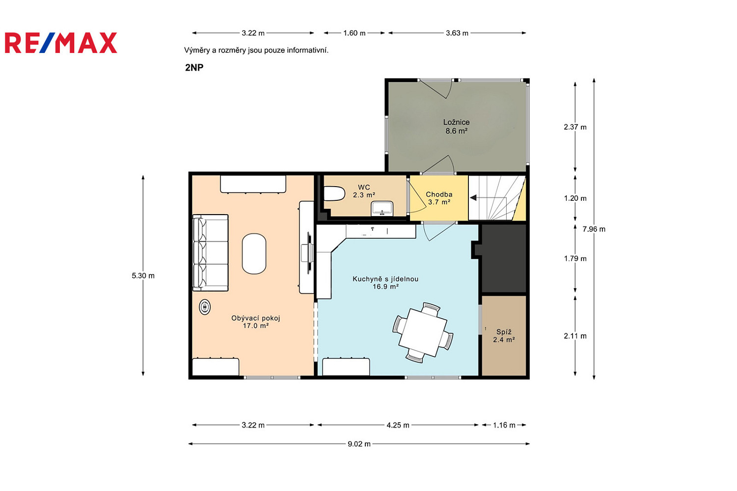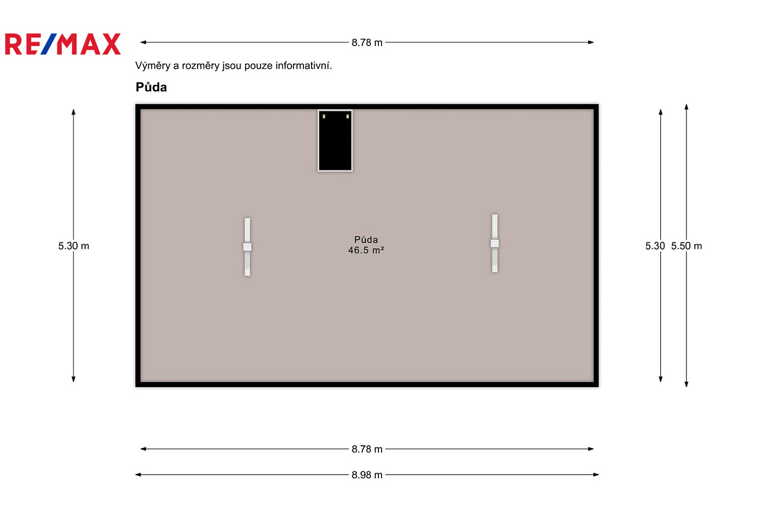 Půda je vhodná k vestavbě s možností vybudování samostatného vstupu přímo ze zahrady.
