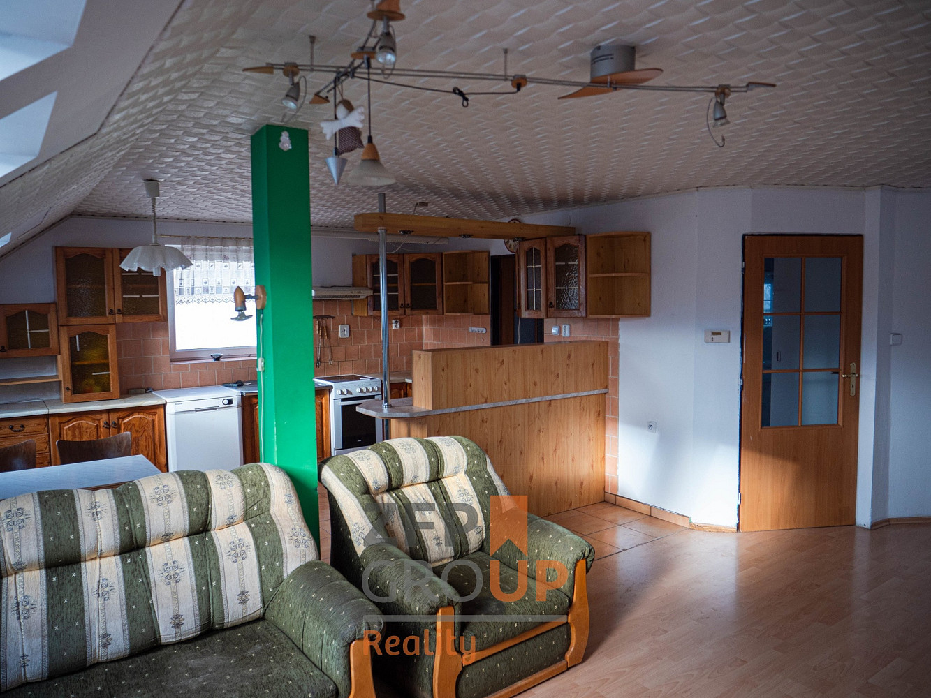 2. NP – 3 místnosti, 2x WC, 2x koupelna, kuchyň s obývacím pokojem přitápění krbovými kamny.