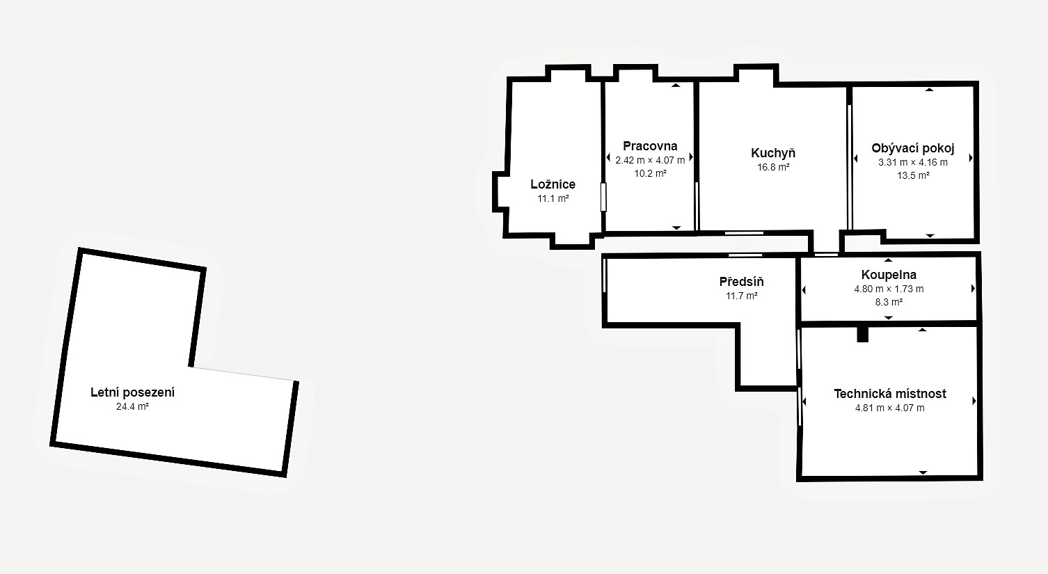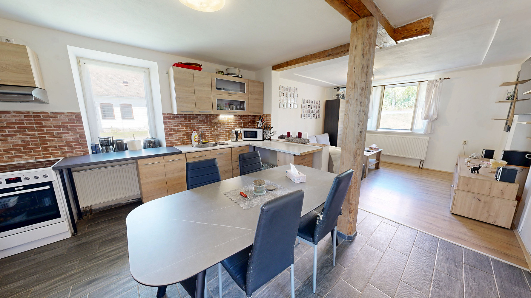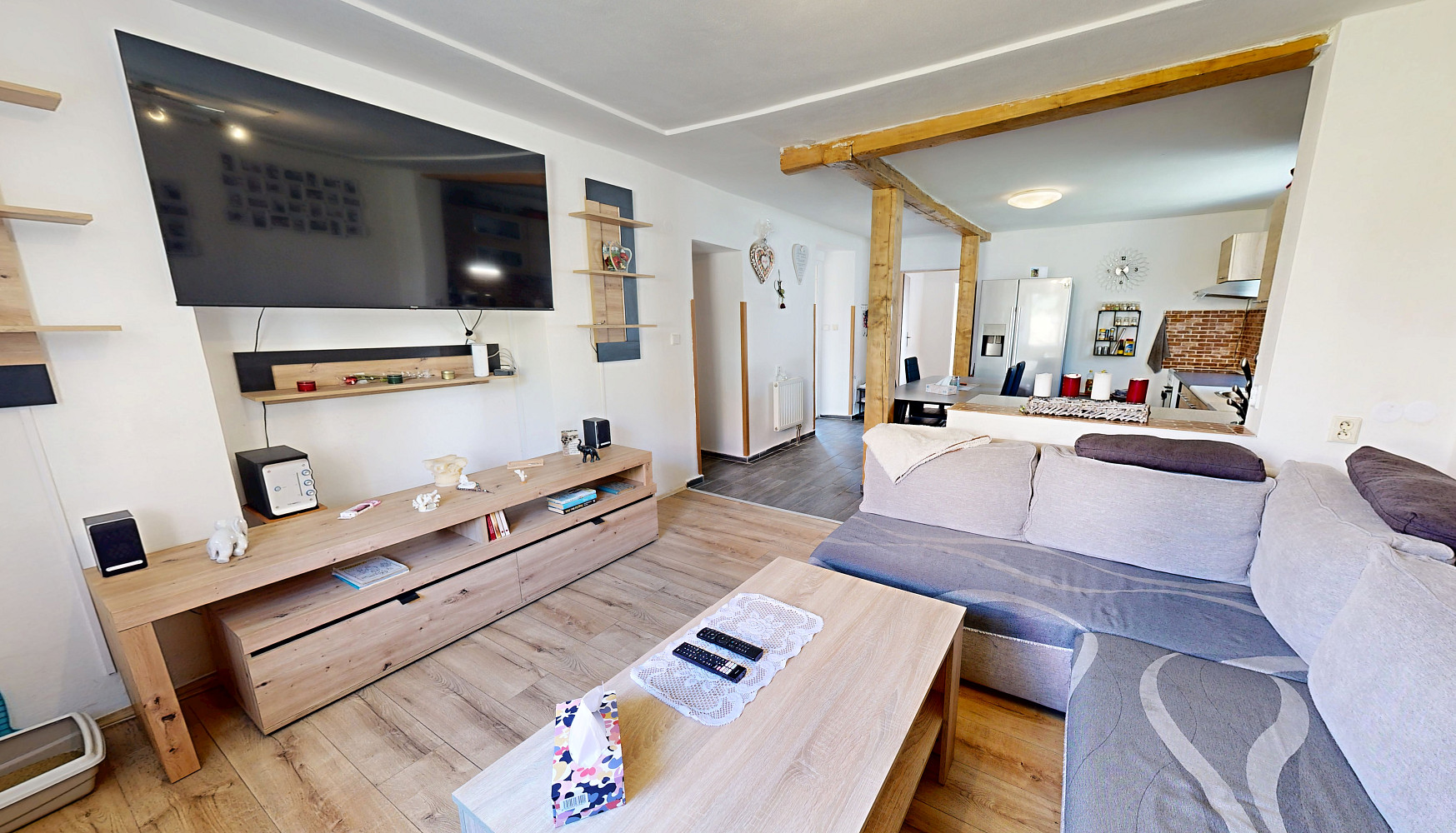 Virtuální prohlídka: Pro maximální představu o aktuálním stavu nemovitosti nabízíme možnost virtuální prohlídky v reálném poměru 1:1 ve virtuální prohlídce můžete i měřit tlačítkem metru, vlevo dole.