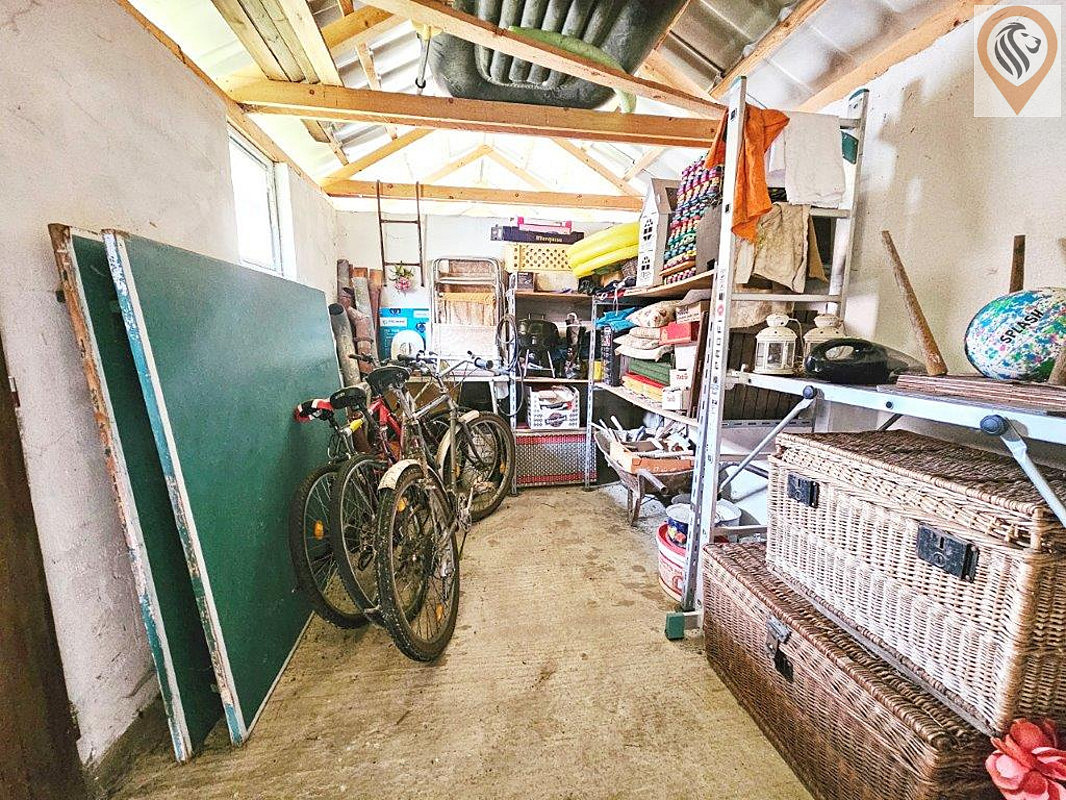 Jistě Vás nadchne obrovská půda, která je nyní využívána jako úložný prostor, ale má potenciál díky vysokému krovu. V tuto chvíli není plně pochozí, ale po stavebních úpravách by šla využít k rozšíření obytných prostor. Skladovat kola, vybavení a další nářadí vám umožní kůlna postavená v roce 2021 a menší garáž, přiléhající k objektu.