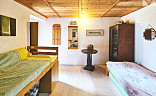 Chalupa nabízí dostatek prostor, včetně krásného původního nábytku a vybavení, bez kterého by to zkrátka nebylo ono. V obývacím pokoji byla kdysi kamna, ale komín zůstal, takže Vám nic nebrání je sem vrátit a užívat si atmosféru praskajícího ohně. Hned vedle obývacího pokoje najdete útulnou malou kuchyňku, ložnici, koupelnu a dílničku. Ve vedlejším objektu (hned vedle koupelny) jsou další dva pokoje pro hosty či rodinu, která za vámi přijede na víkend.