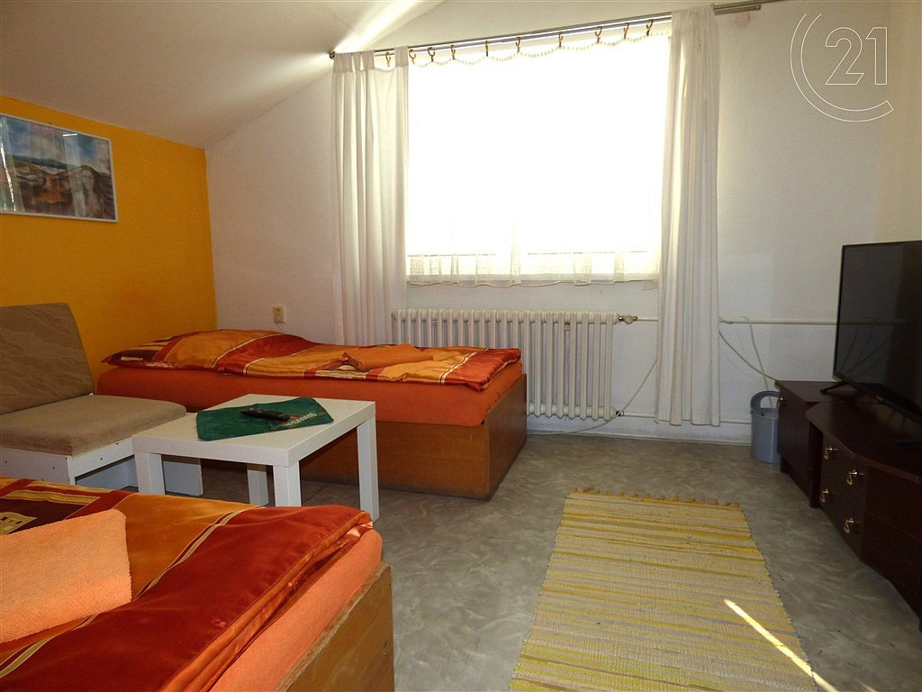 V mezipatře se nachází samostatná jednotka 1+1 s vlastním sociálním zařízením, která může sloužit jako zázemí pro majitele, zaměstnance, nebo jako samostatný byt k pronájmu.