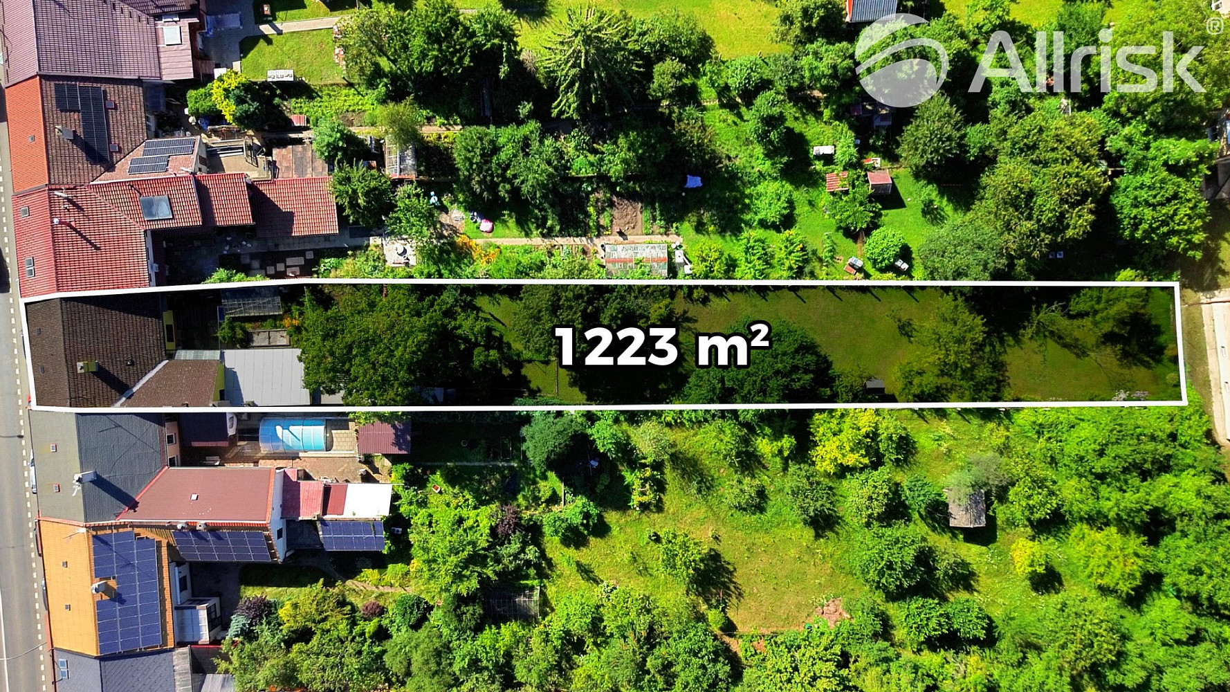 Zahrada, která vás okouzlí Za domem se rozprostírá nádherná, slunná a zcela rovná zahrada o rozloze 1223 m², plná ovocných stromů, kde si můžete vypěstovat vlastní ovoce nebo jen relaxovat pod majestátním ořešákem. Zahrada je oázou klidu, kde neuslyšíte ruch města, jen zpěv ptáků a šum listí. Ideální místo pro letní grilování s přáteli, dětské hry nebo vlastní zeleninovou zahrádku.
