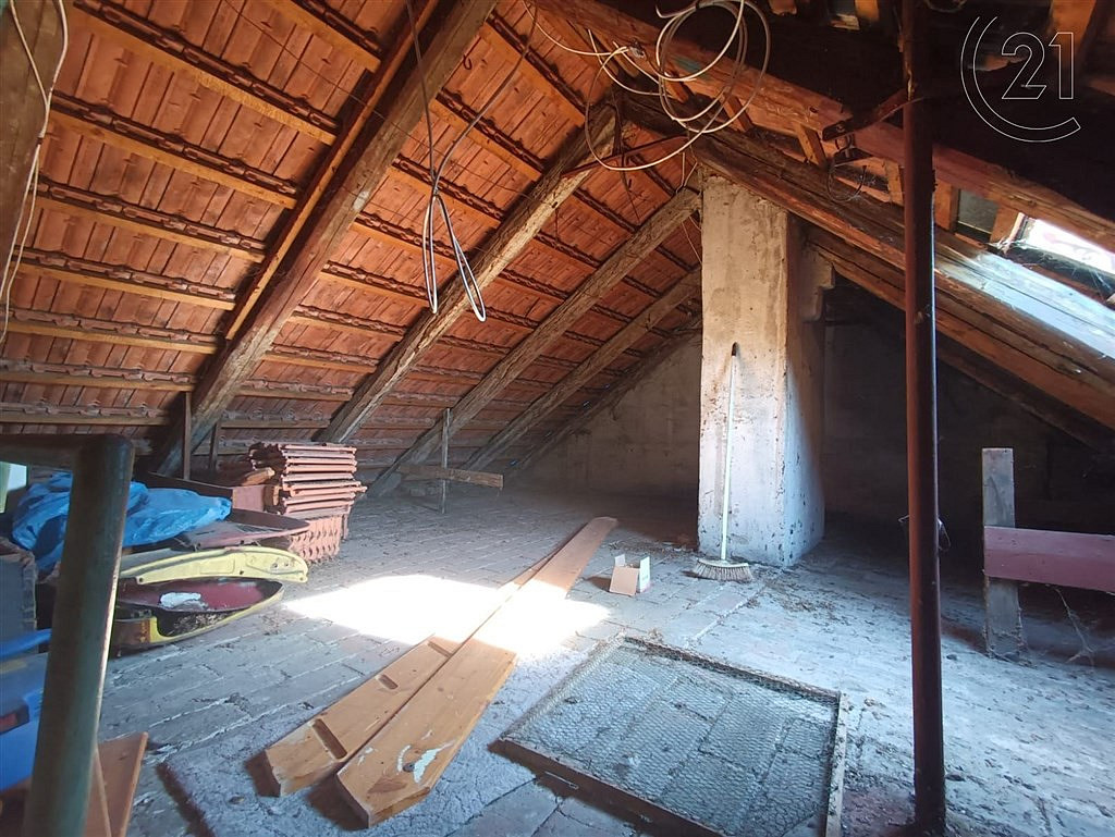 Výhodou je půdní prostor, kompletní podsklepení a zahrada s přístavbou na uskladnění.