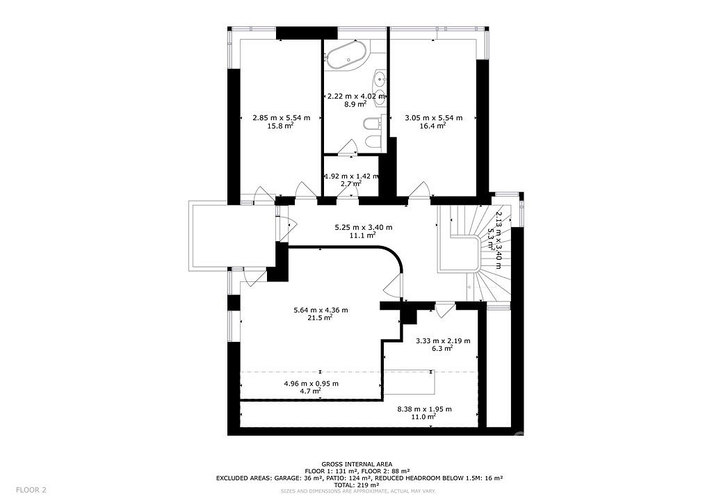 V patře se nachází tři neprůchozí pokoje, koupelna s toaletou a terasa s výhledem do zahrady.