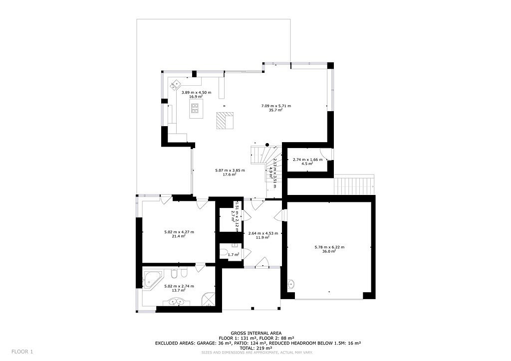 Celková plocha pozemku činí 2 002 m², z toho zastavěná plocha 232 m² a udržovaná zahrada s hřištěm a zahradním domkem 1 770 m². Užitná plocha domu je celkem 329 m² a je rozdělena do tří podlaží. Dispozice domu je aktuálně 5+kk, s možností rozšíření na 6+kk díky připravenému prostoru ve sklepním podlaží.
