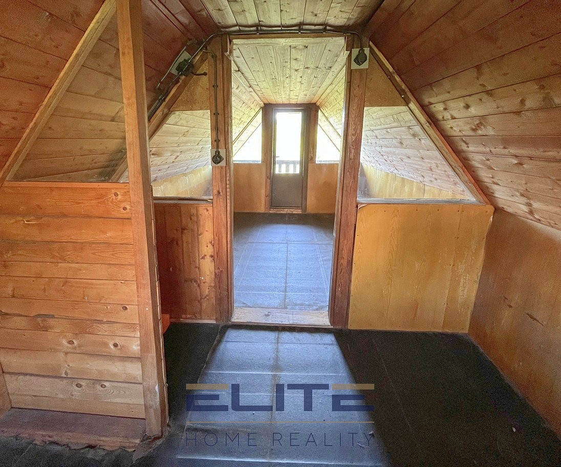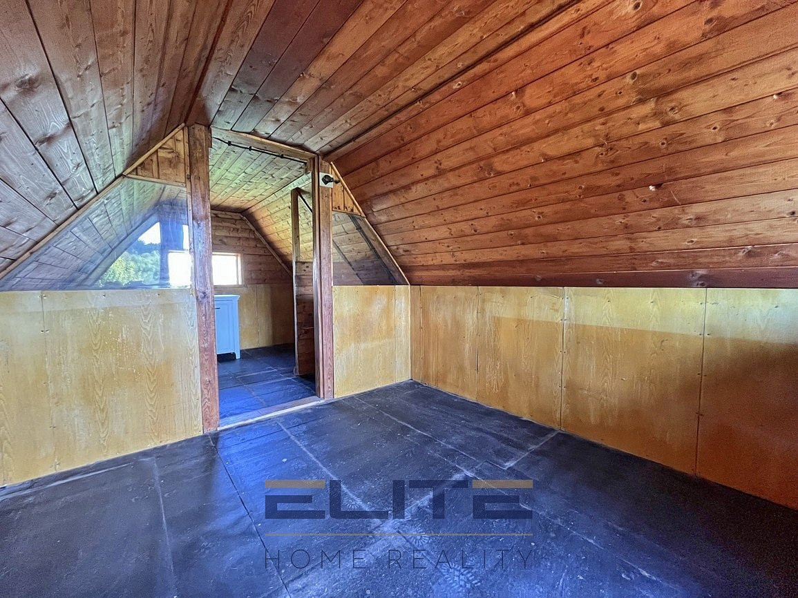 Chata nabízí dostatek prostoru nejen pro víkendové pobyty a letní odpočinek, ale i pro rozmanité využití během celého roku. Do přízemí vstoupíte po několika schodech přes zádveří, odkud se vchází do praktického prostoru pro kuchyňskou linku a otevřený obytný prostor. Právě z něj se dostanete na velkou slunnou terasu, která se stává přirozeným prodloužením interiéru. Ideální pro ranní kávu, čtení, odpočinek i večerní posezení s výhledem do zeleně. Ze zádveří vedou schody do podkroví, které nabízí místo ke spaní. Zde se nachází i menší lodžie, odkud si můžete vychutnat působivý výhled do okolní přírody. V suterénu jsou dvě samostatné místnosti, každá s vlastním vstupem. Jedna z nich může sloužit jako další obytný prostor, místo pro setkávání s přáteli, relaxační zóna, pracovna, dílna nebo tichá "trucovna". Ve druhé je prostor pro technické zázemí.
