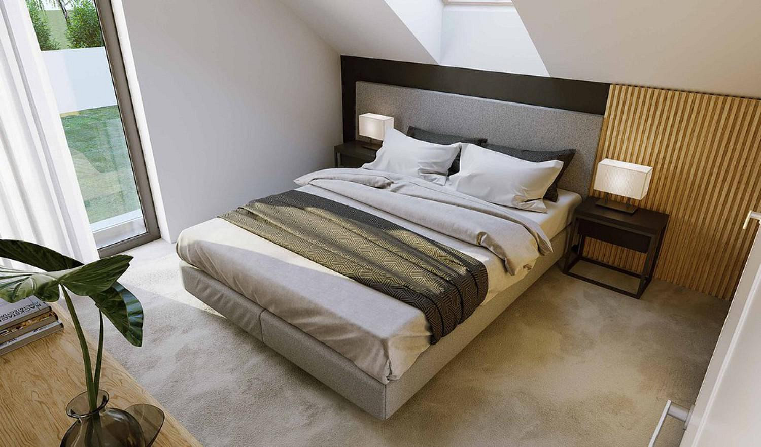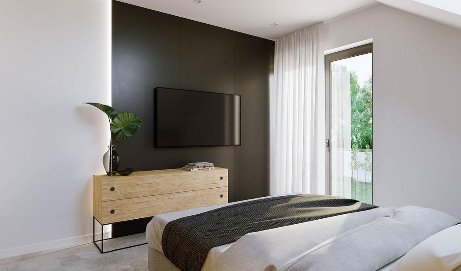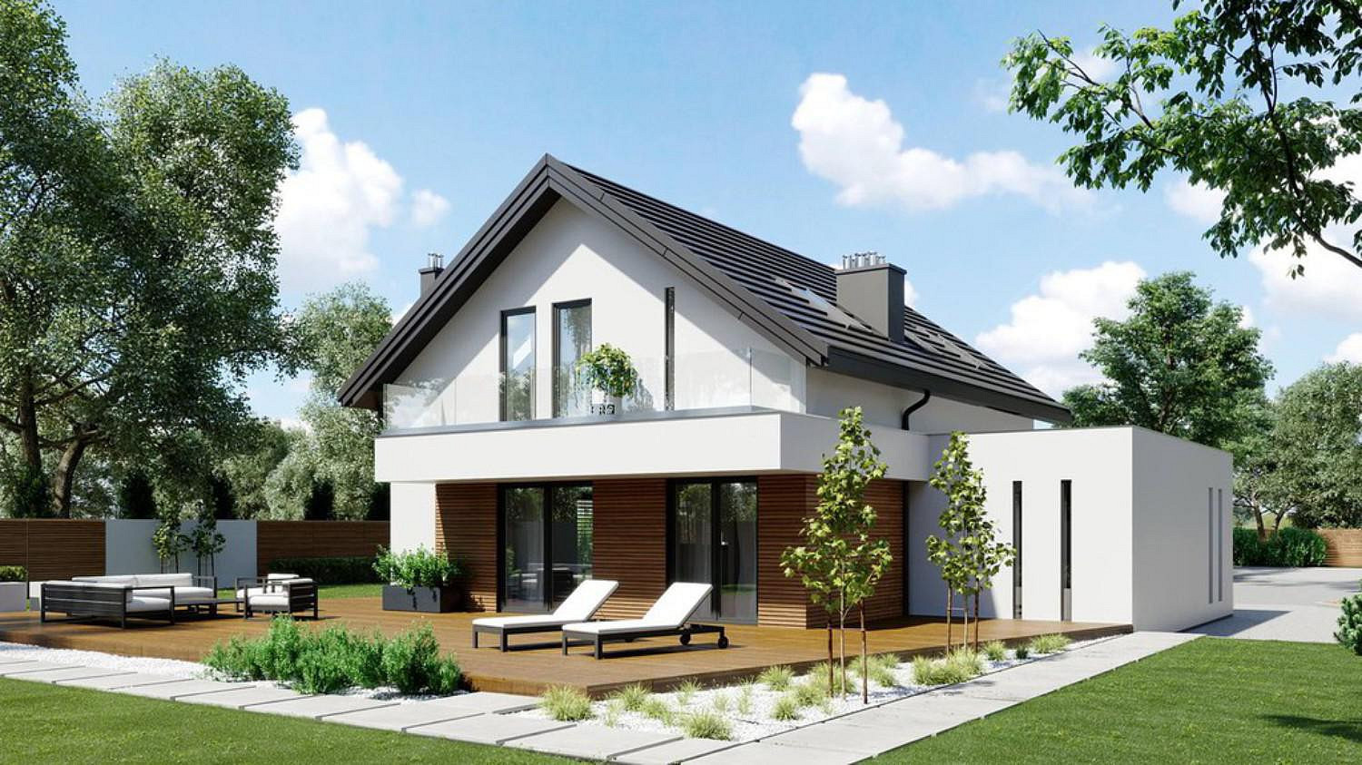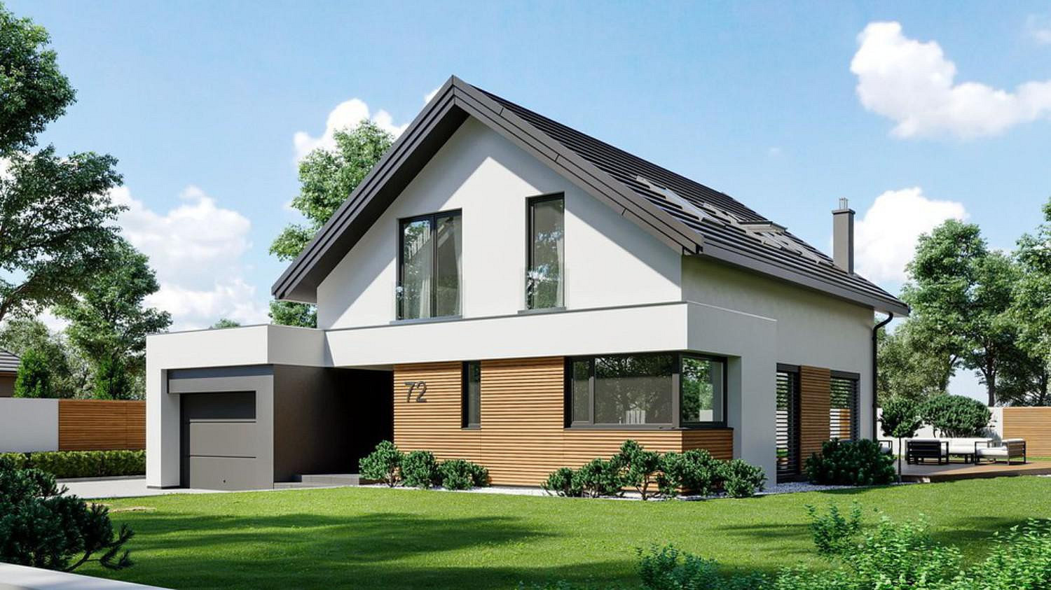 Projekt Malaga je moderní rodinný dům s podkrovím, sedlovou střechou a velmi atraktivní funkční dispozicí. Na malé ploše byl navržen pohodlný prostor pro vícečlennou rodinu. V přízemí se nachází prostorný obývací pokoj s jídelnou, praktická kuchyň a komora. To jsou prvky nezbytné k vytvoření dokonalého domova. Za pozornost stojí také okna, která díky své velikosti zaručují vynikající osvětlení místnosti. Z obývacího pokoje můžete vyjít na slunnou terasu pro relax. Návrháři se také postarali o další pokoj pro hosty a malou koupelnu se sprchou. V technické části budovy je také kotelna sloužící jako prádelna a technická místnost za garáží. V podkroví byl navržen pohodlný soukromý prostor. K dispozici je koupelna, tři ložnice a ložnice rodičů se soukromým šatníkem. Vše je prakticky promyšlené a využívá se každý metr. Projekt Malaga je pohodlný a moderní dům, ve kterém si každý obyvatel bez ohledu na věk a zájmy najde své vysněné místo.